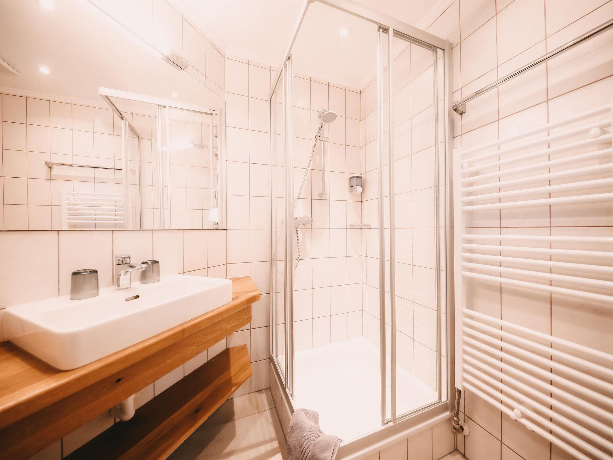 traditionelles Doppelzimmer im Stammhaus mit Balkon, Dusche und WC. Gemütliche Zweisamkeit oder als Ergänzung zu unseren Appartements.