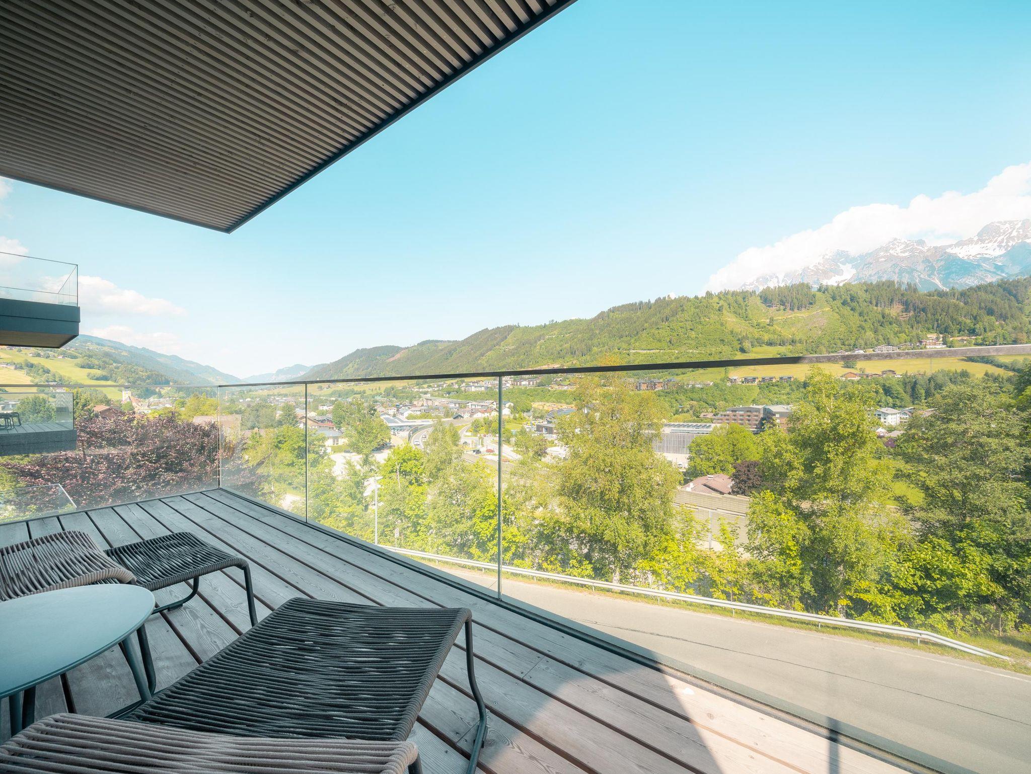 - Balkon in Richtung Norden mit Dachsteinblick, in Richtung Westen mit Blick ins Ennstal oder mit Terrasse Richtung Westen