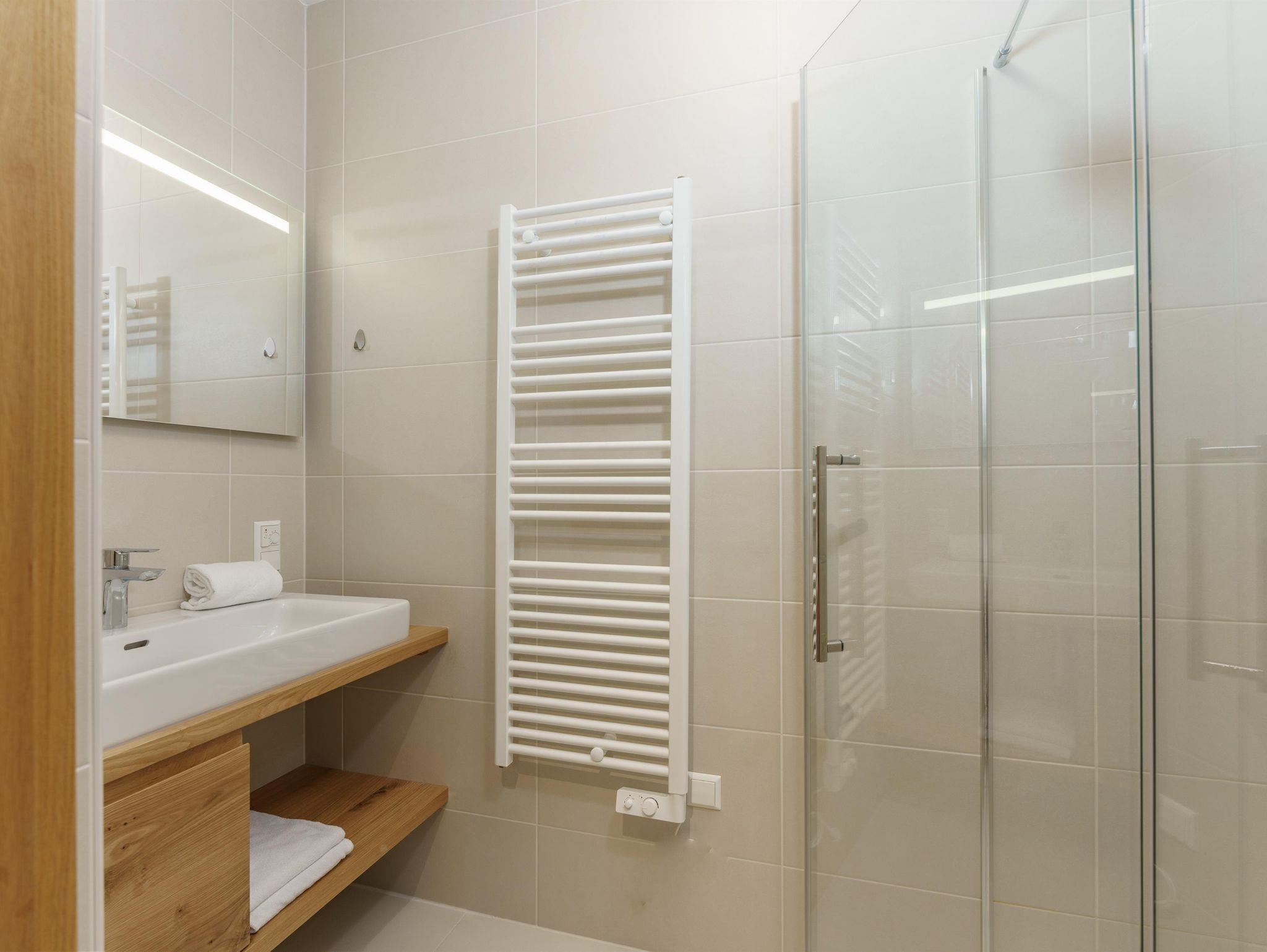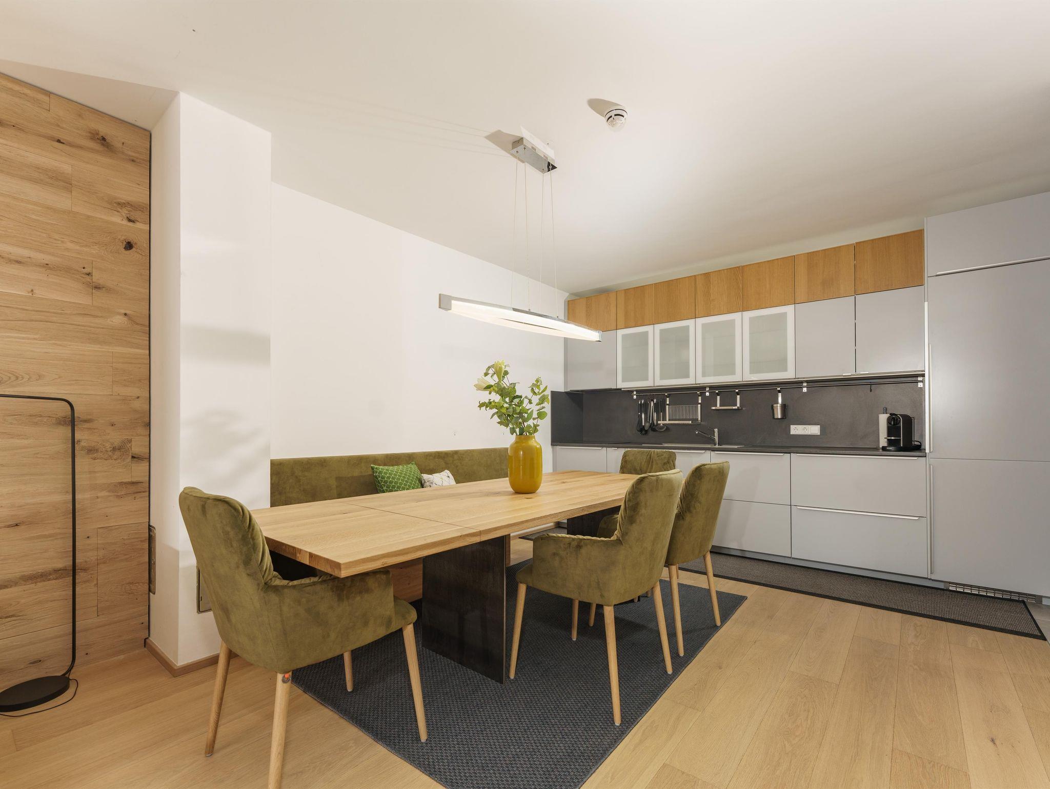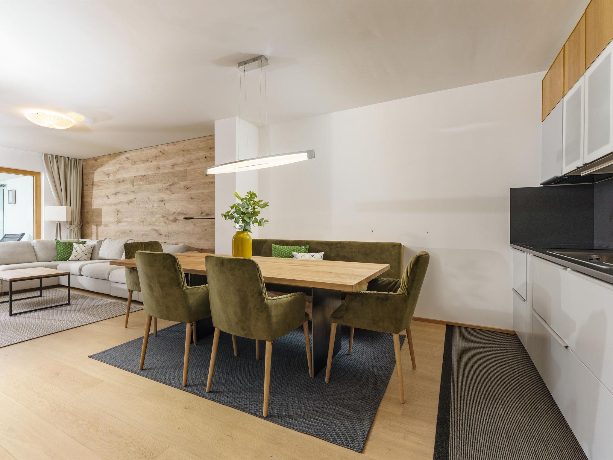 3 miteinander verbunden Häuser 38 servicierte Appartements, von 40m² Studios, Appartements mit einem, zwei oder drei Schlafzimmern bis hin zu 130m² Penthäusern, herrlichen Ausblick und Top Ausstattung inklusive! Die hochwertige Grundausstattung der Appartements mit heimischen Materialen wie Holz, Stein und Glas vermitteln ein modernes Wohlfühlambiente mit viel Licht und Aussicht, - eine Symbiose aus purem Lebensgefühl und Kraftplatz an der Sonne. Komplett ausgestattete Designküchen, großzügige Wohnräume zum Teil mit offenem Kamin, moderne & stylische Möbel, kostenfreies WLAN, Kabel TV in allen Schlaf- und Wohnräumen sowie moderne und lichtdurchflutete Badezimmer, lassen für den Gast, der seine private Freiheit schätzt, keine Wünsche offen .