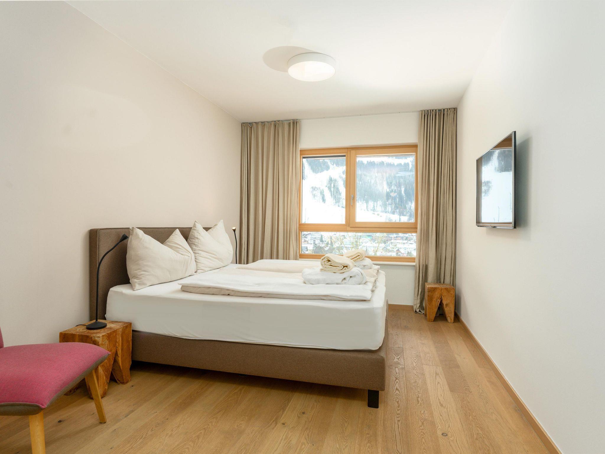 3 miteinander verbunden Häuser 38 servicierte Appartements, von 40m² Studios, Appartements mit einem, zwei oder drei Schlafzimmern bis hin zu 130m² Penthäusern, herrlichen Ausblick und Top Ausstattung inklusive! Die hochwertige Grundausstattung der Appartements mit heimischen Materialen wie Holz, Stein und Glas vermitteln ein modernes Wohlfühlambiente mit viel Licht und Aussicht, - eine Symbiose aus purem Lebensgefühl und Kraftplatz an der Sonne. Komplett ausgestattete Designküchen, großzügige Wohnräume zum Teil mit offenem Kamin, moderne & stylische Möbel, kostenfreies WLAN, Kabel TV in allen Schlaf- und Wohnräumen sowie moderne und lichtdurchflutete Badezimmer, lassen für den Gast, der seine private Freiheit schätzt, keine Wünsche offen .