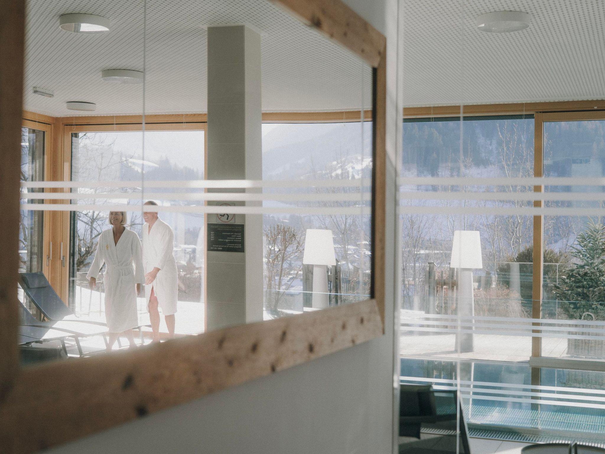 Ein absolutes Highlight der SUN LODGE ist der Wellnessbereich. In einer atemberaubenden Aussichtslage lädt das Spa an 365 Tagen im Jahr zum Schwimmen und Energietanken ein. Genießen Sie einen 360 Grad Weitblick über das Ennstal mit Blick auf Schladming und die Schladminger Hausberge Planai und Hochwurzen. Ein Edelstahl Indoor-Pool, eine finnische Sauna, ein Dampfbad, eine Kaminlounge, individuelle Ruhebereiche, Behandlungsräume für Massagen und Beauty und Umkleidekabinen laden im Inneren zum Entspannen ein.