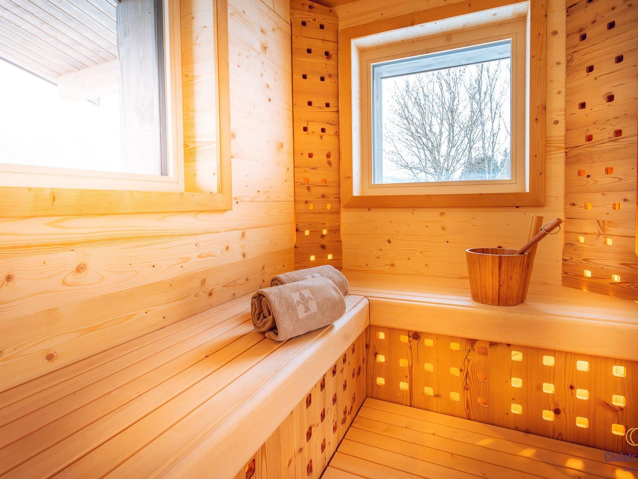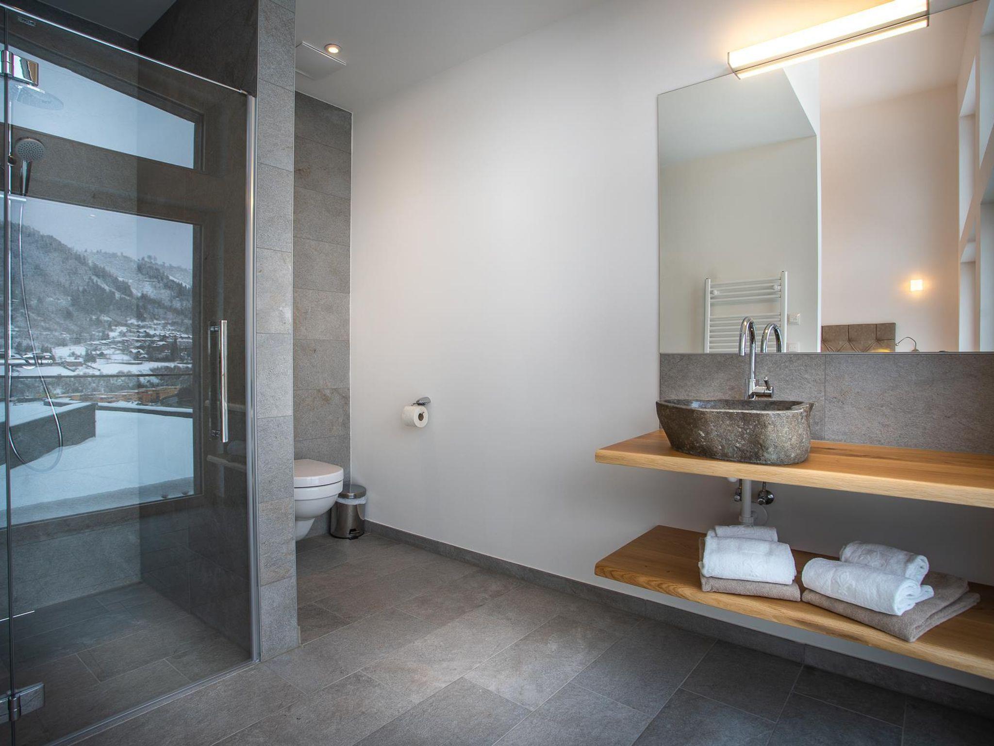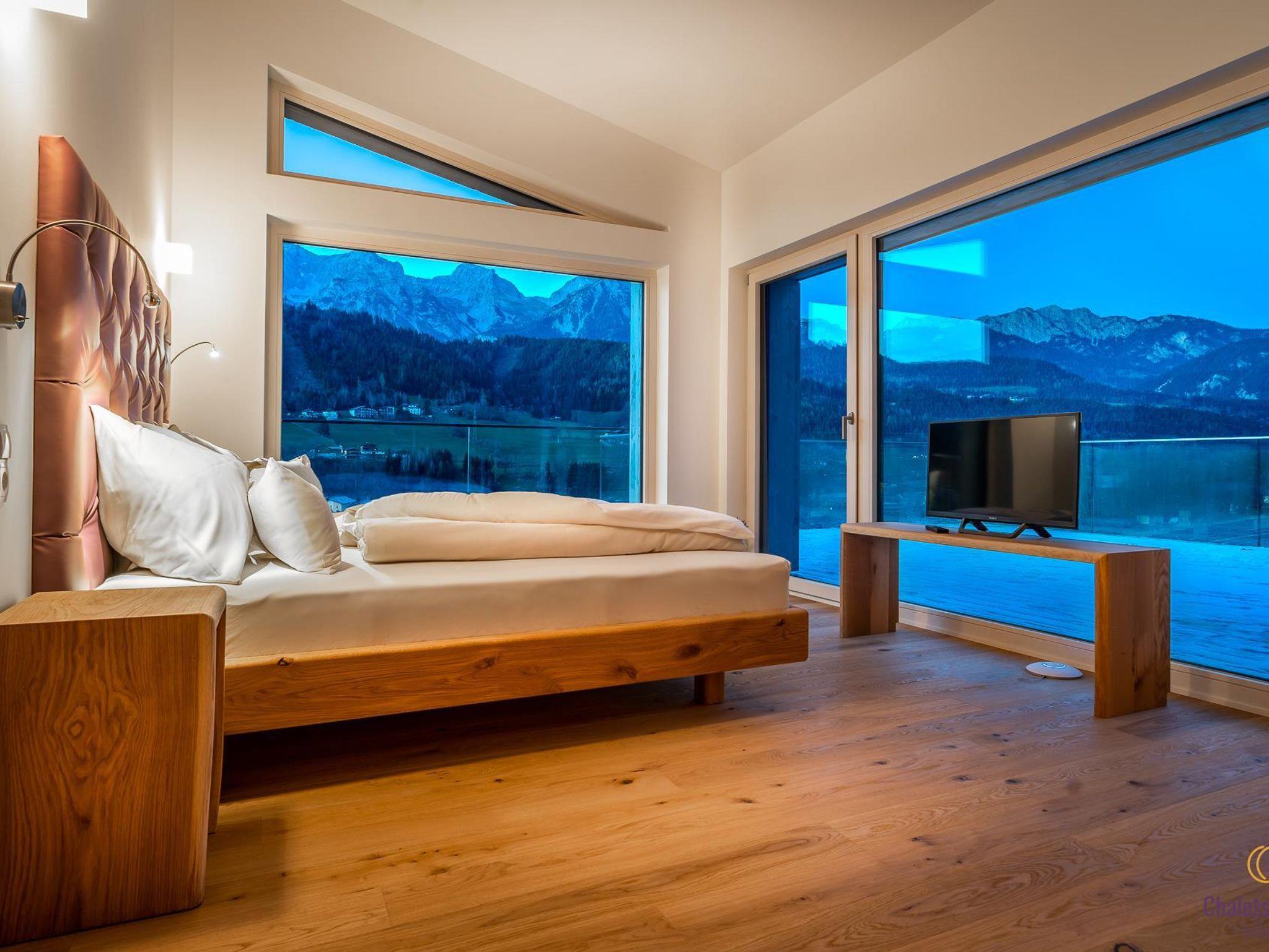 - 1 Privat Spa mit Sauna und Blick auf den Dachstein, Granitwaschbecken und Regendusche sowie einem Einzelbett