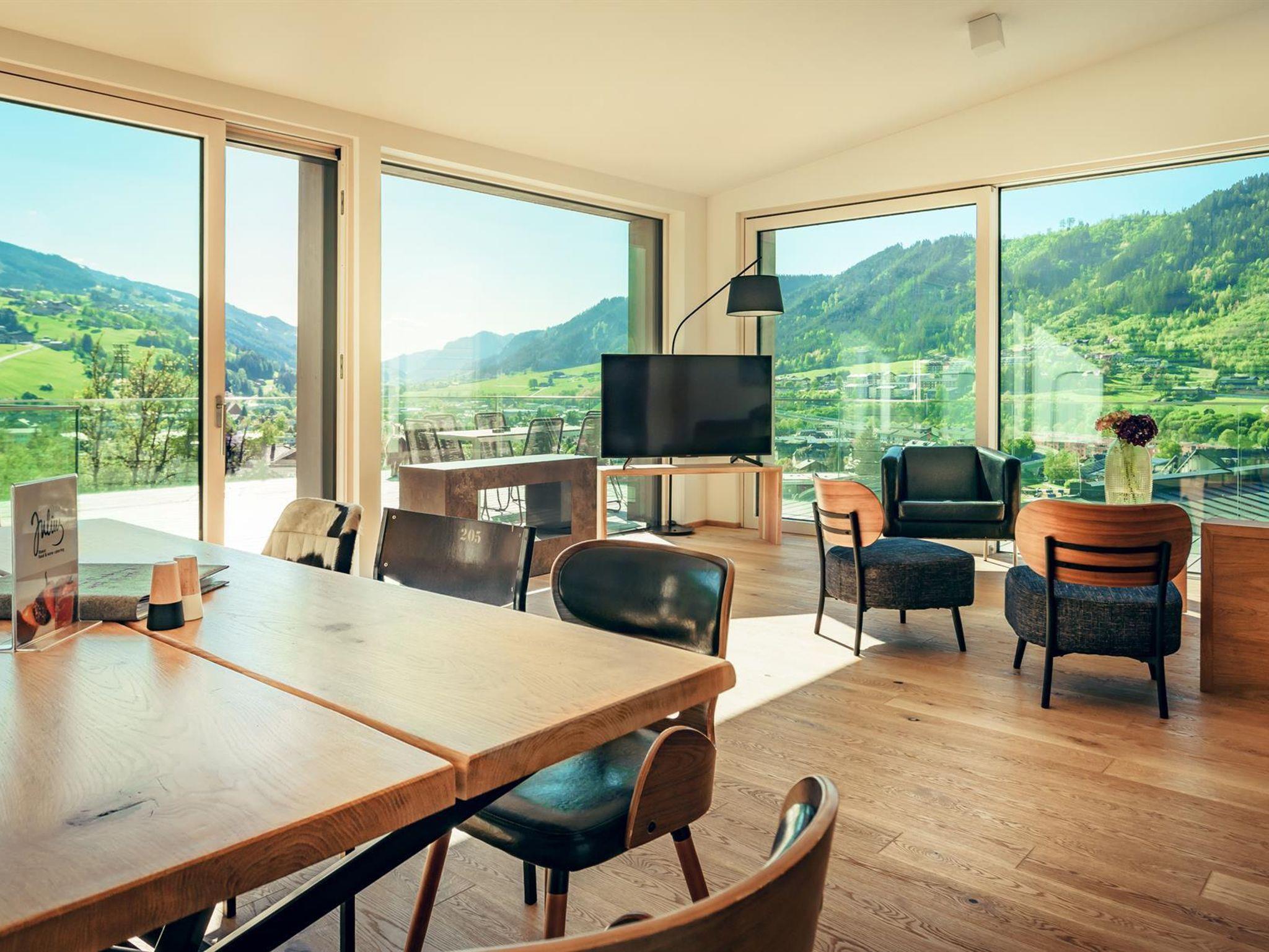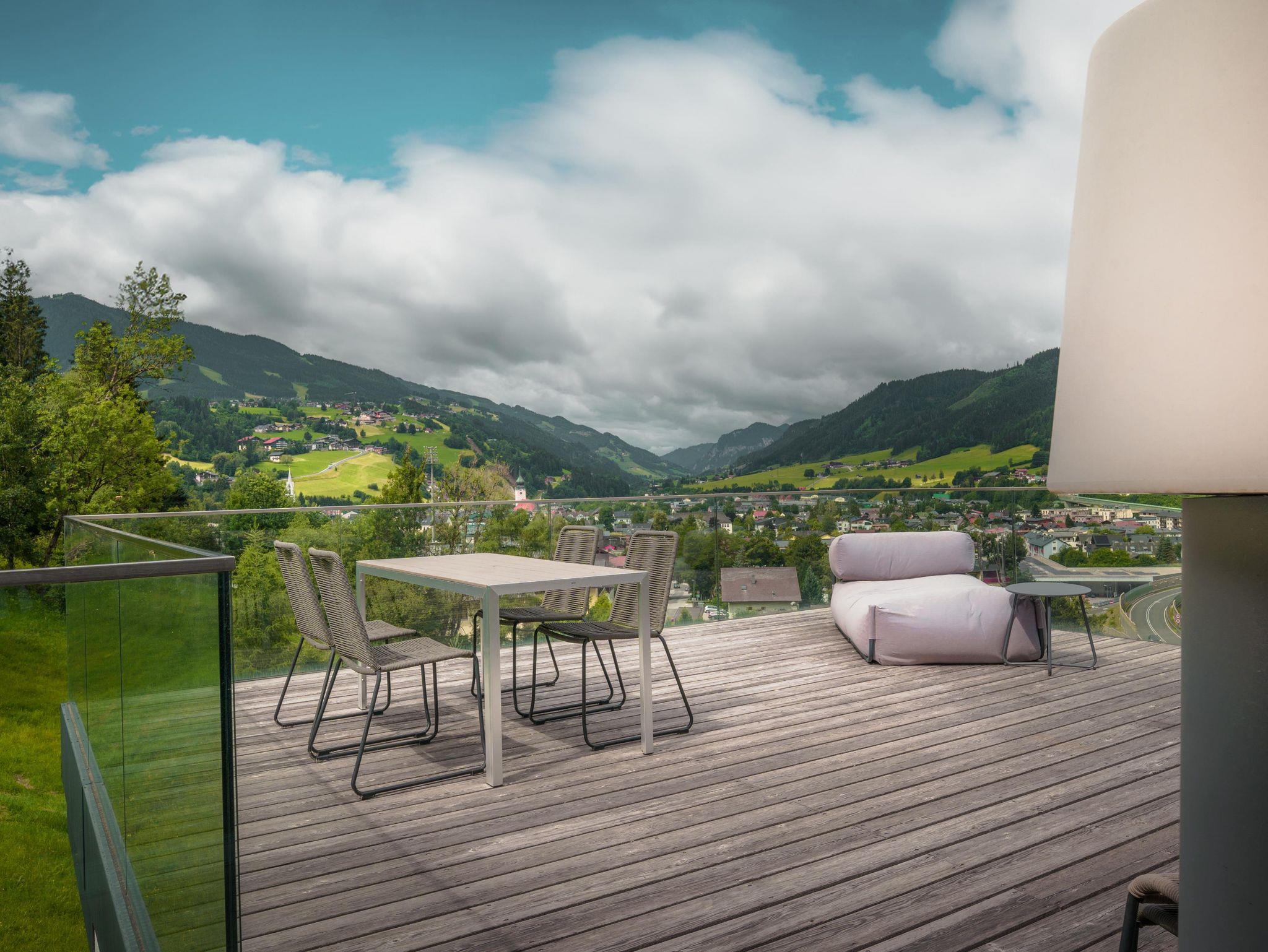 - 1 50m² Terrasse mit 360 Grad Panoramablick sowie Dachsteinblick