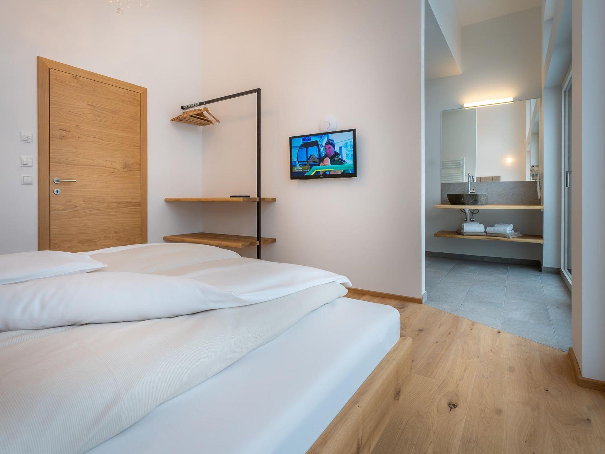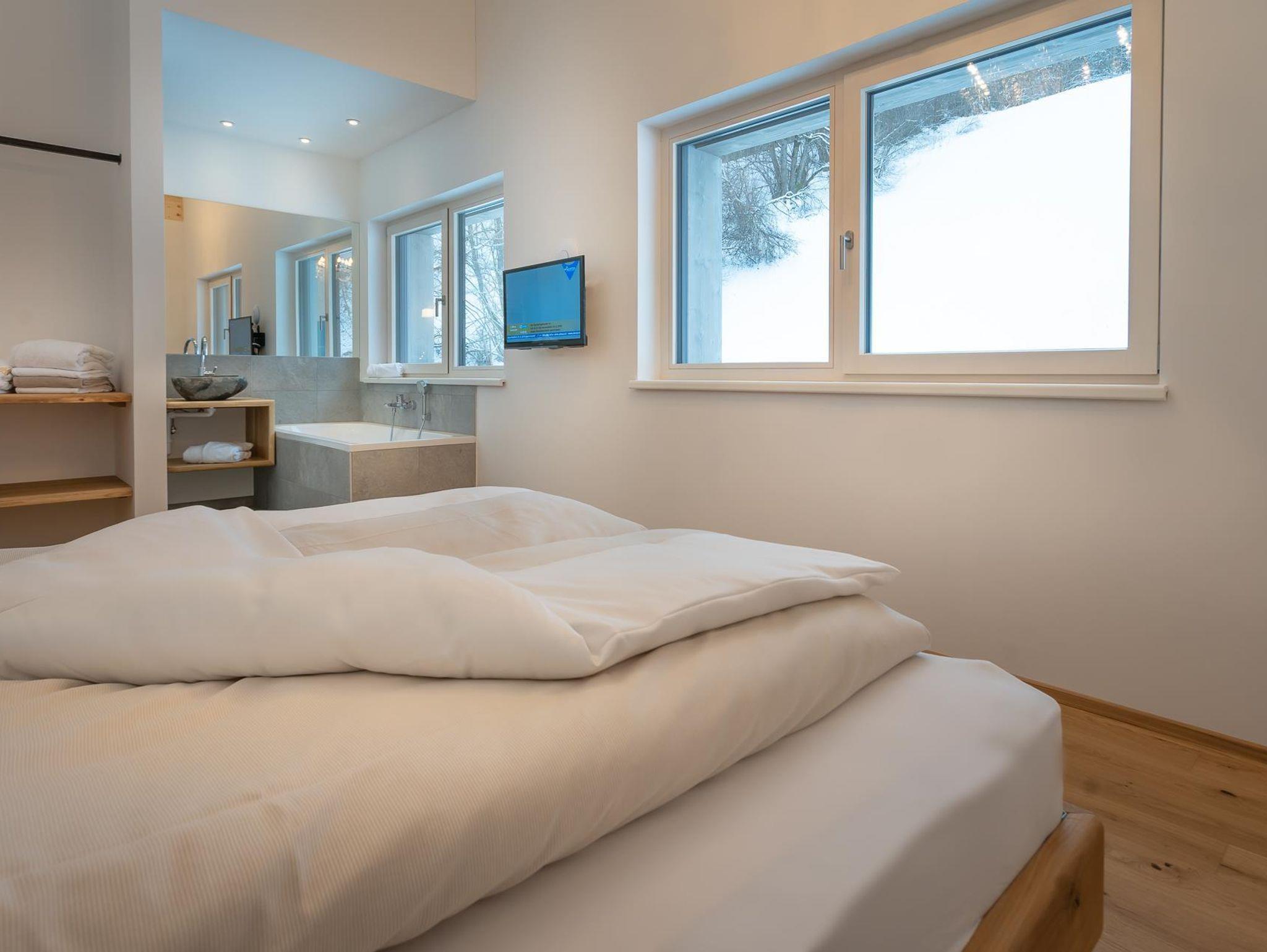 - Vier-Raum Appartement mit einer Raumhöhe von 4 m, mit zwei separaten Schlafzimmern mit je einem Doppelbett sowie einem Einzelbett im privaten SPA-Bereich