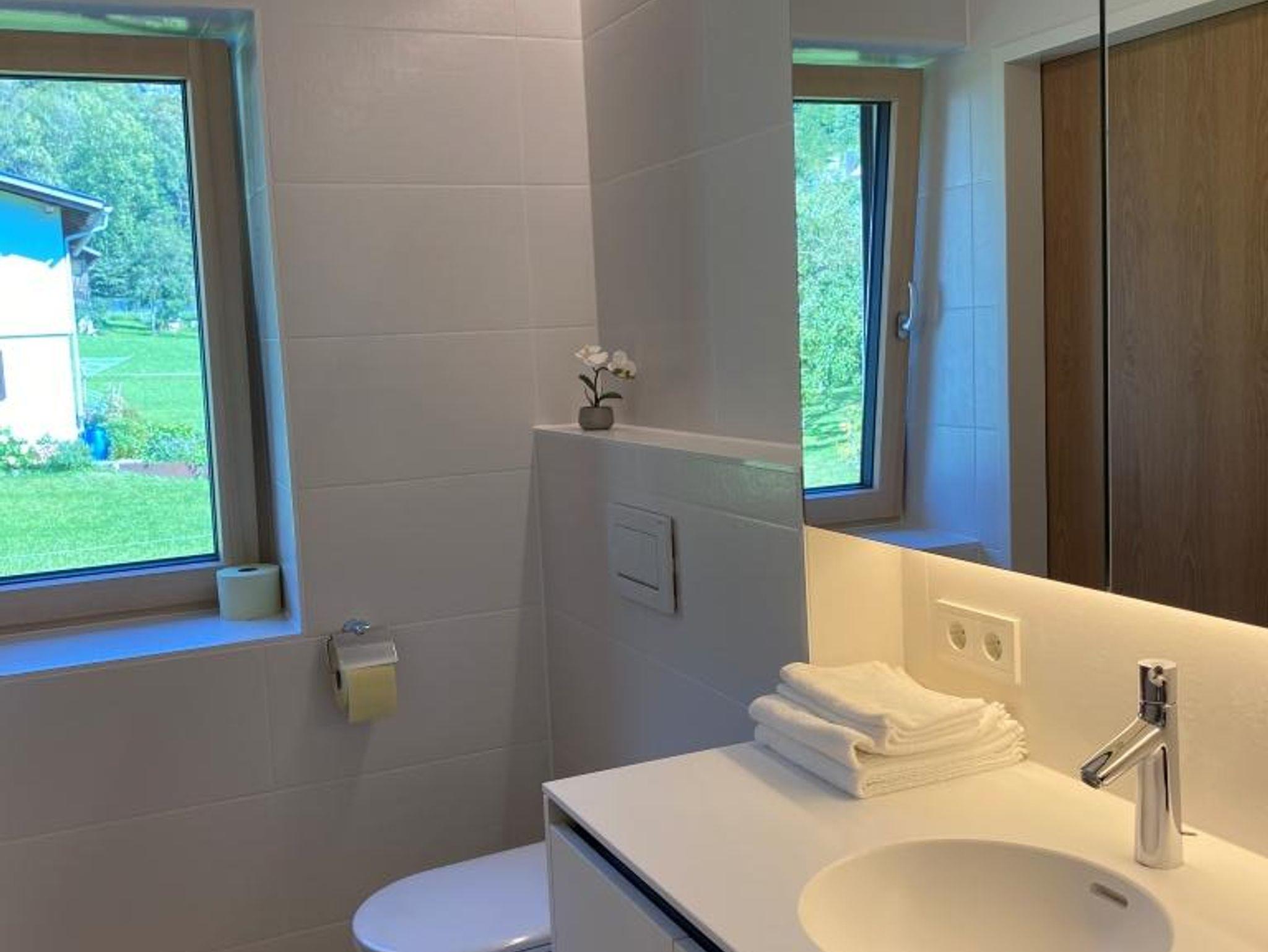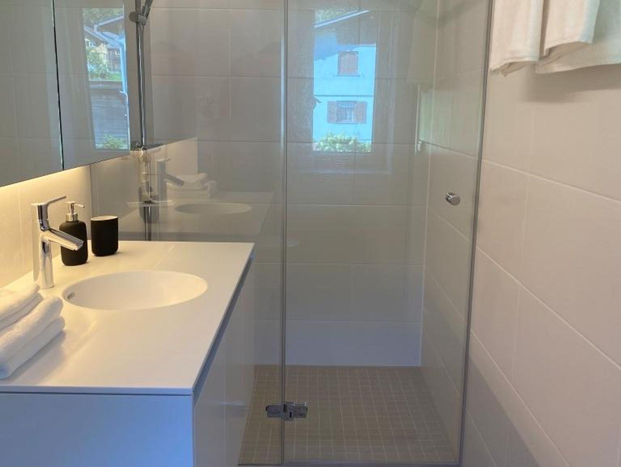 • Modernes Badezimmer mit Bodenheizung, Dusche, Haartrockner und Fenster