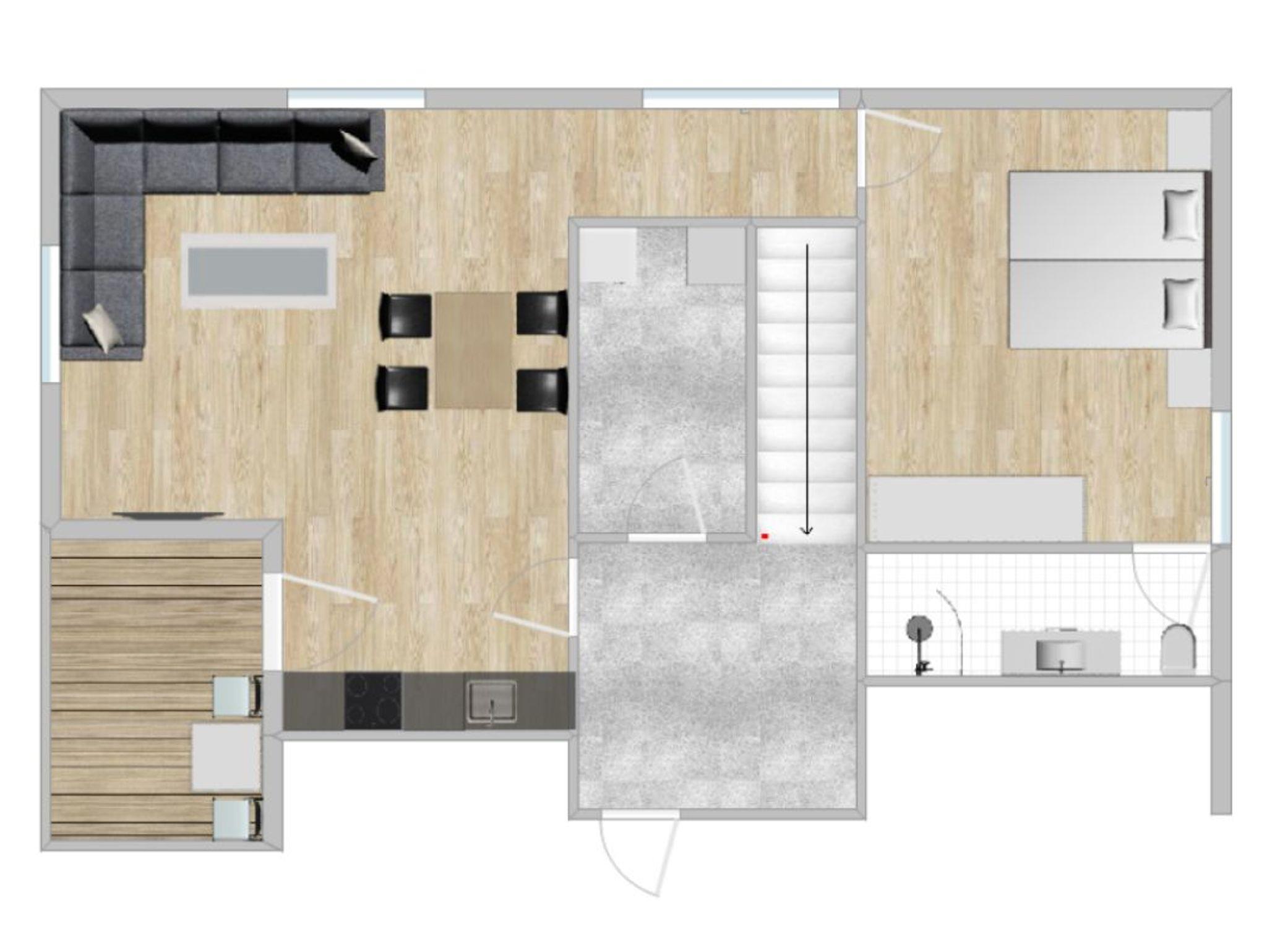 Diese liebevoll eingerichtete Ferienwohnung mit einer Gesamtgröße von 55?m² bietet Ihnen alles, was Sie für einen angenehmen Aufenthalt benötigen. Sie verfügt über ein gemütliches Wohnzimmer, ein separates Schlafzimmer sowie ein modernes Badezimmer mit ebenerdiger Dusche und Haartrockner.