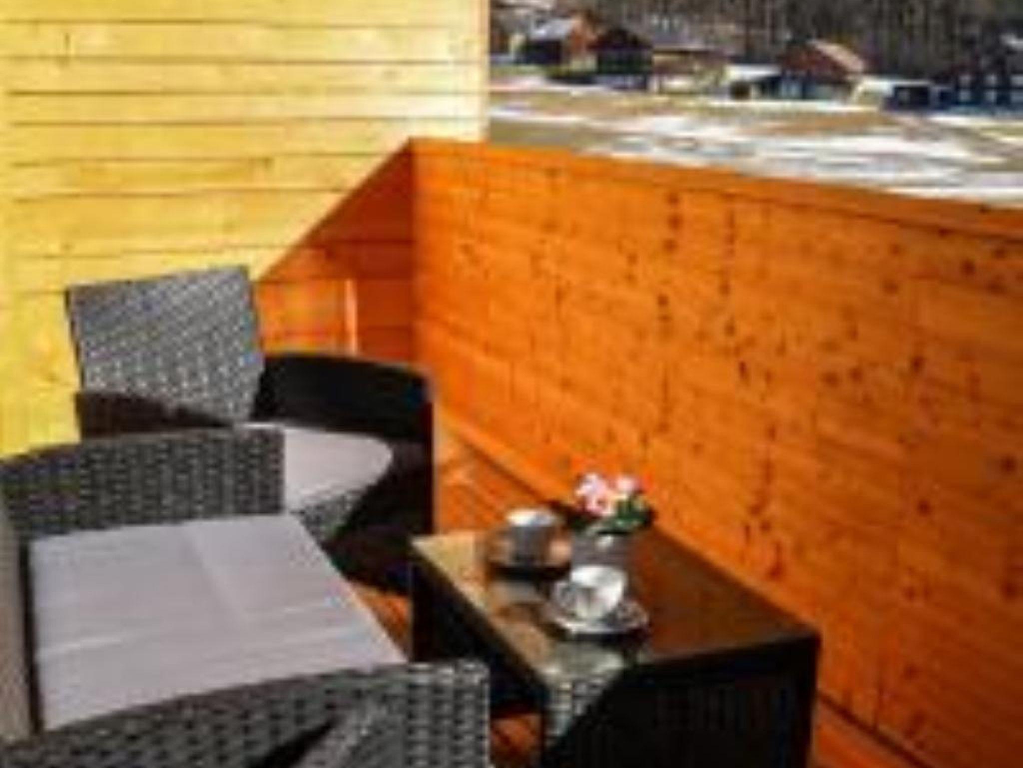 • Überdachter Balkon mit gemütlicher Sitzmöglichkeit und traumhaftem Blick auf die Berge