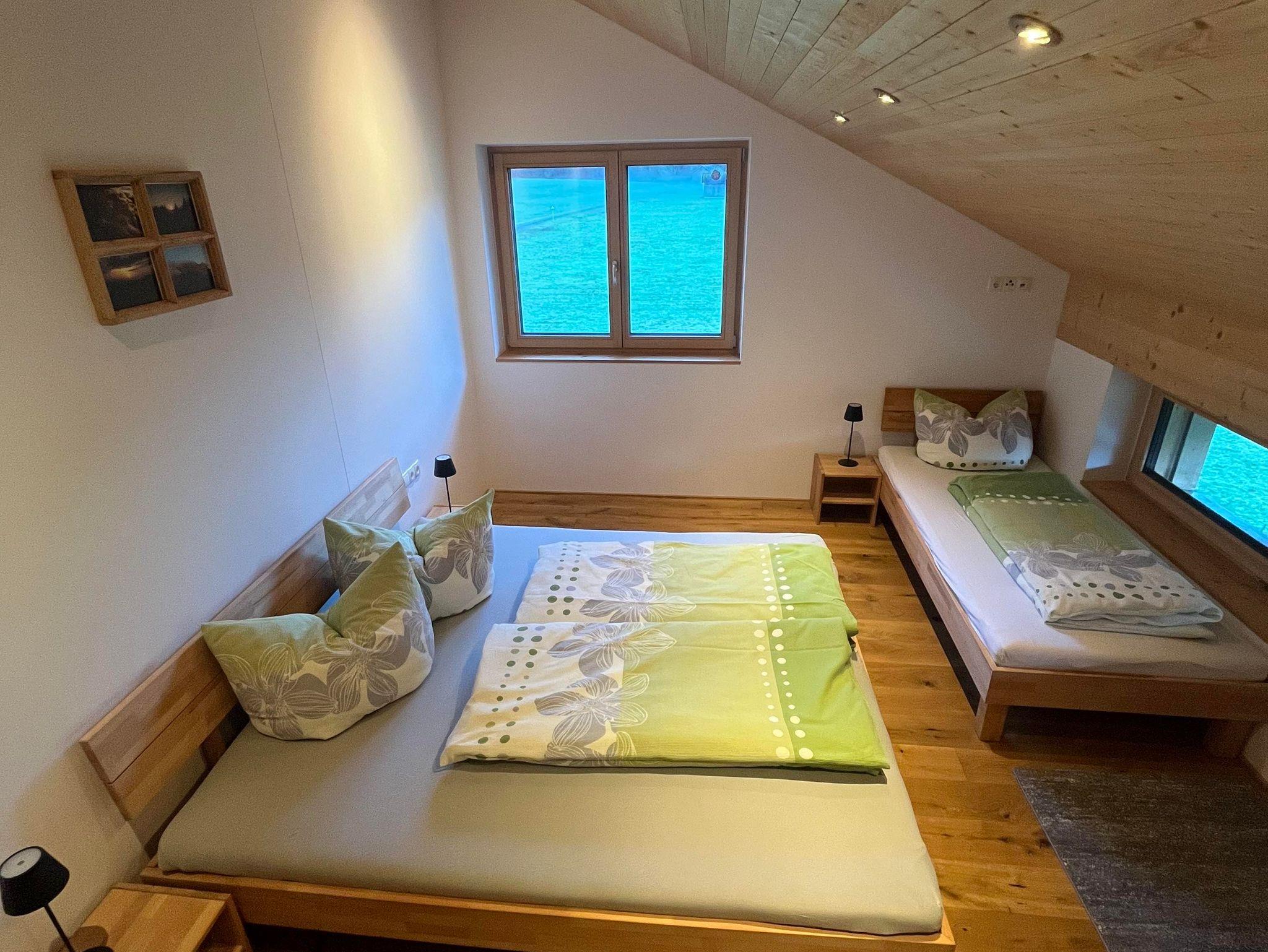 Gemütliche Ferienwohnung mit Bergblick und Abenteuerspielplatz – ideal für Familien! Unsere großzügige Nichtraucher-Ferienwohnung bietet auf 100 m² Platz für die ganze Familie. Jedes der drei Schlafzimmer ist mit einem Doppelbett (180x200) sowie einem Einzelbett (90x200) ausgestattet. Zusätzlich steht im Wohnbereich ein Schlafsofa zur Verfügung.