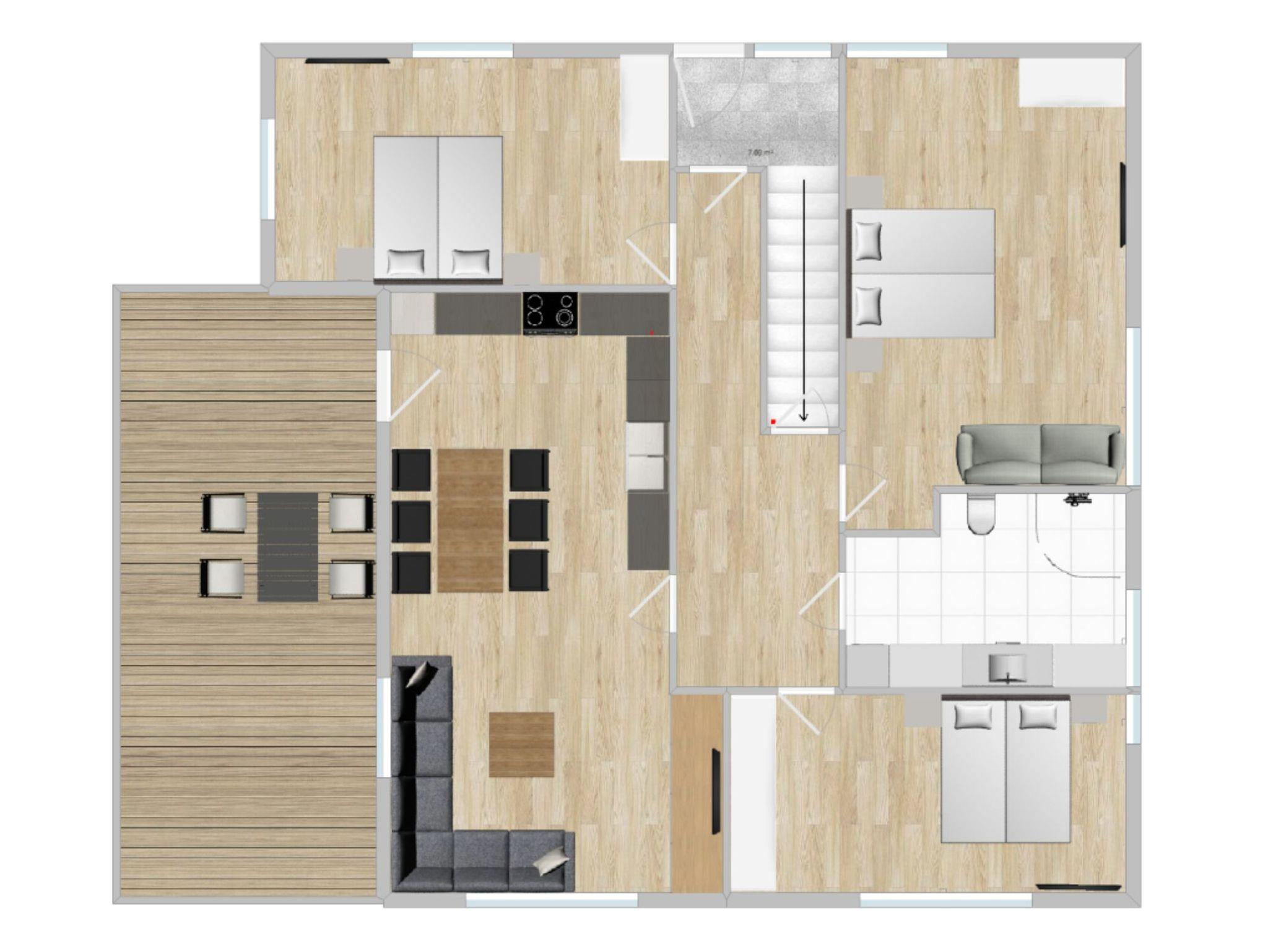 Mit insgesamt sechs komfortablen Schlafplätzen ist die Unterkunft perfekt geeignet für Familien oder kleine Gruppen, die Wert auf Raum, Stil und Funktionalität legen.