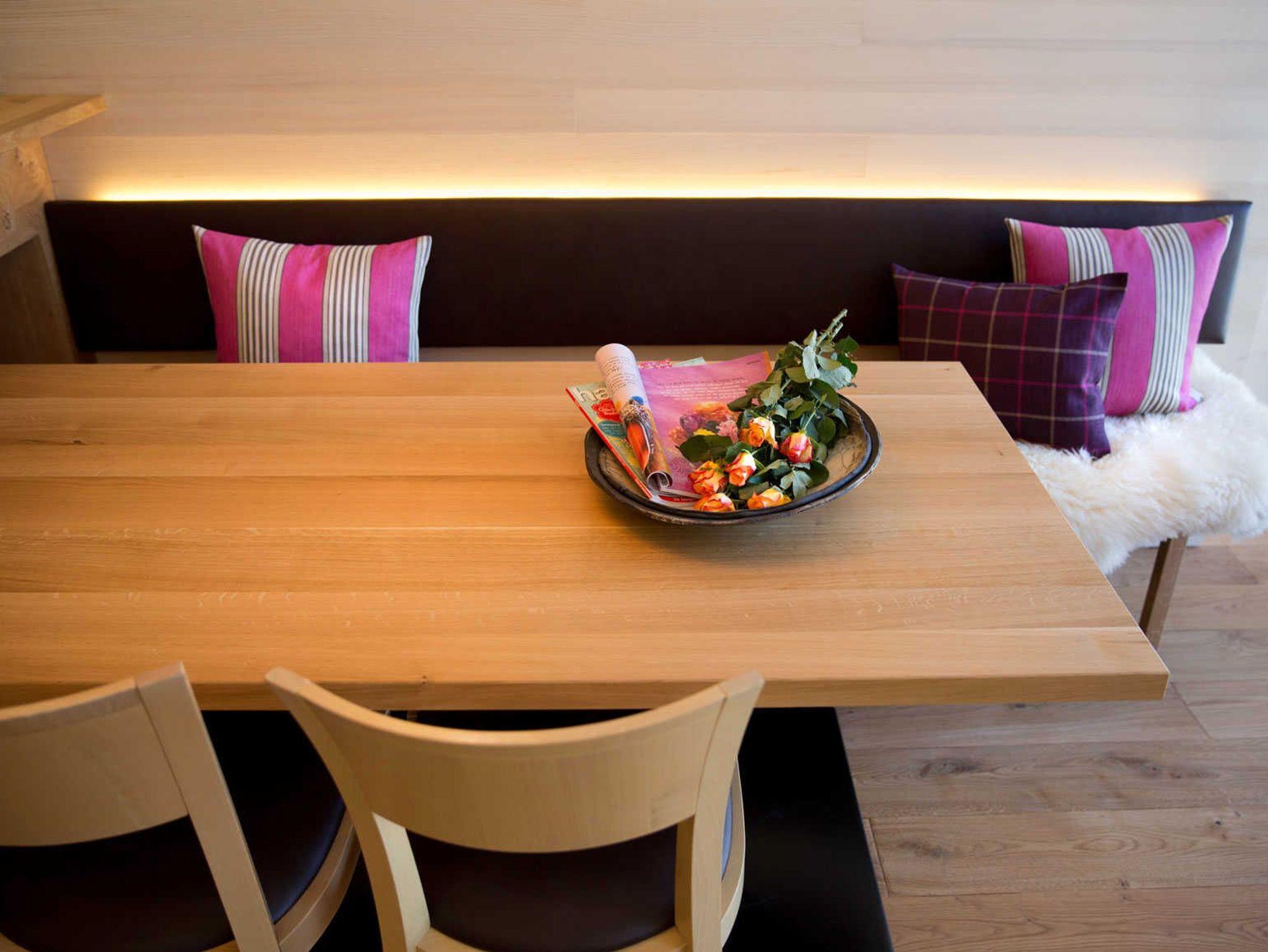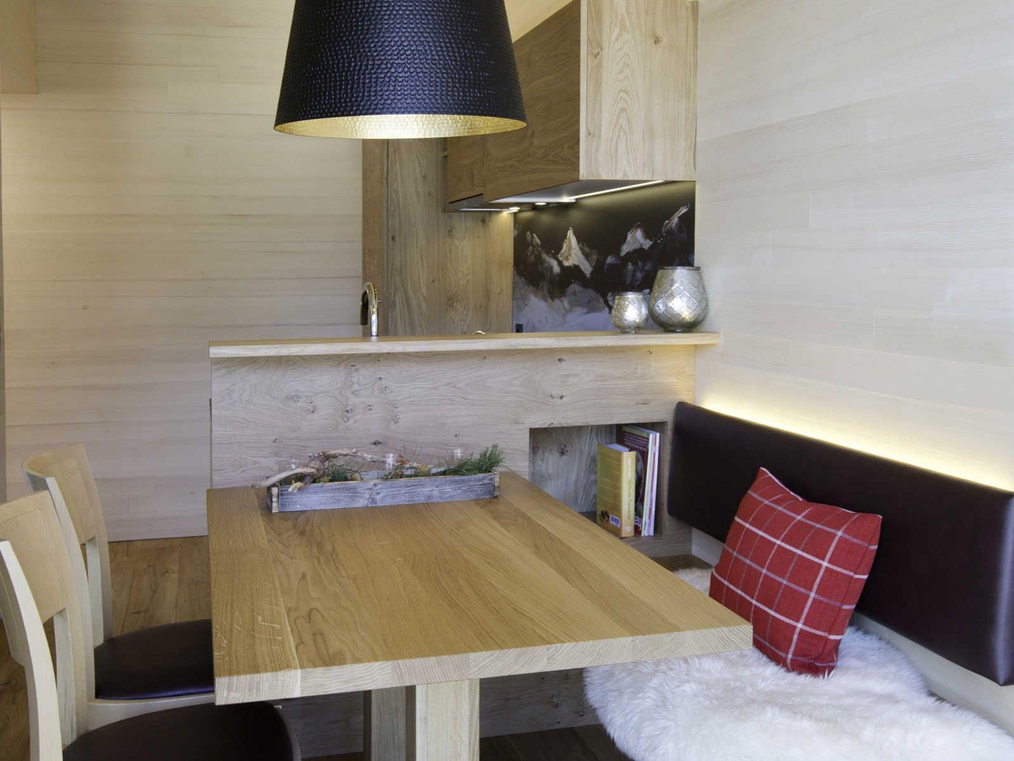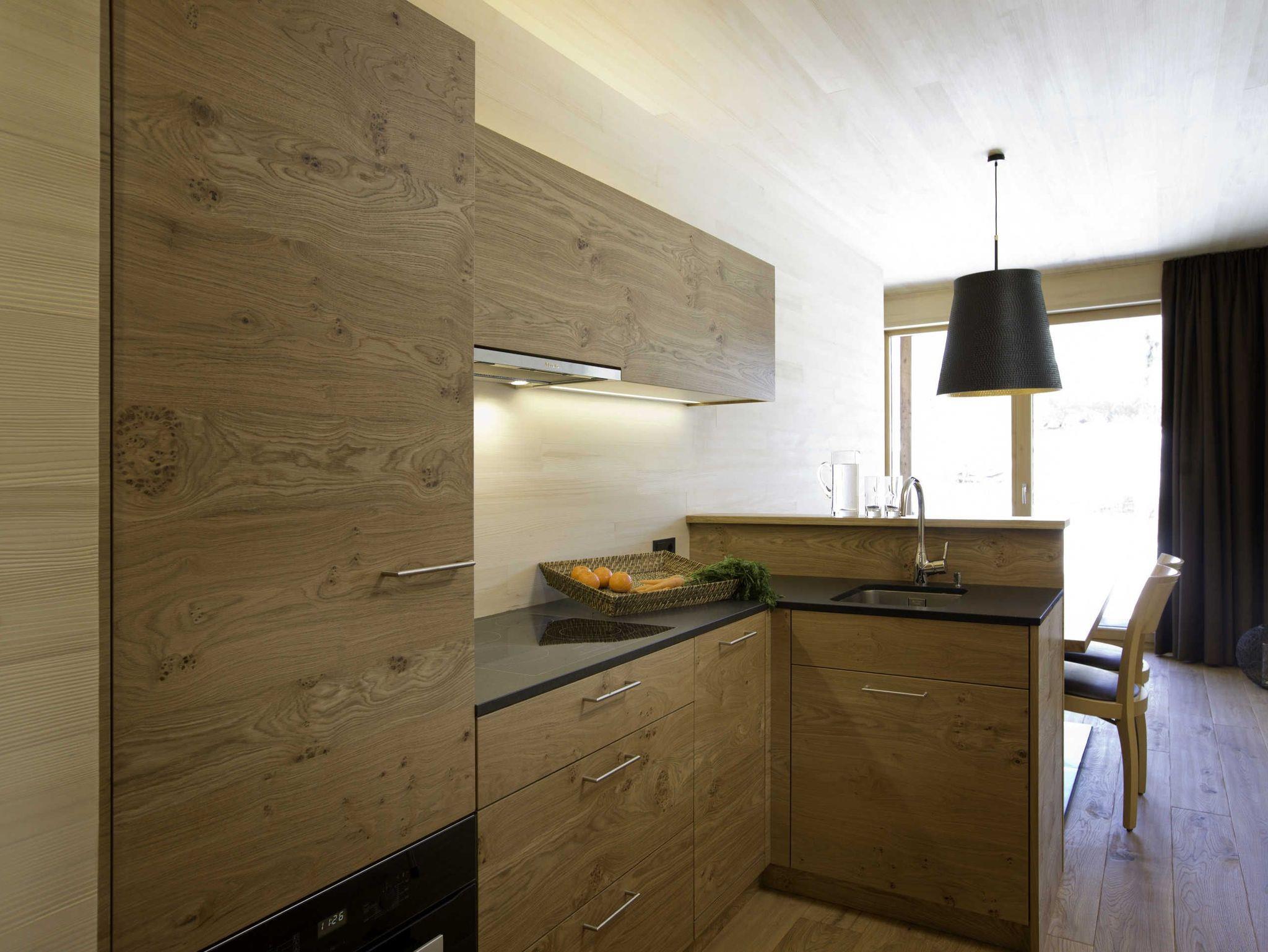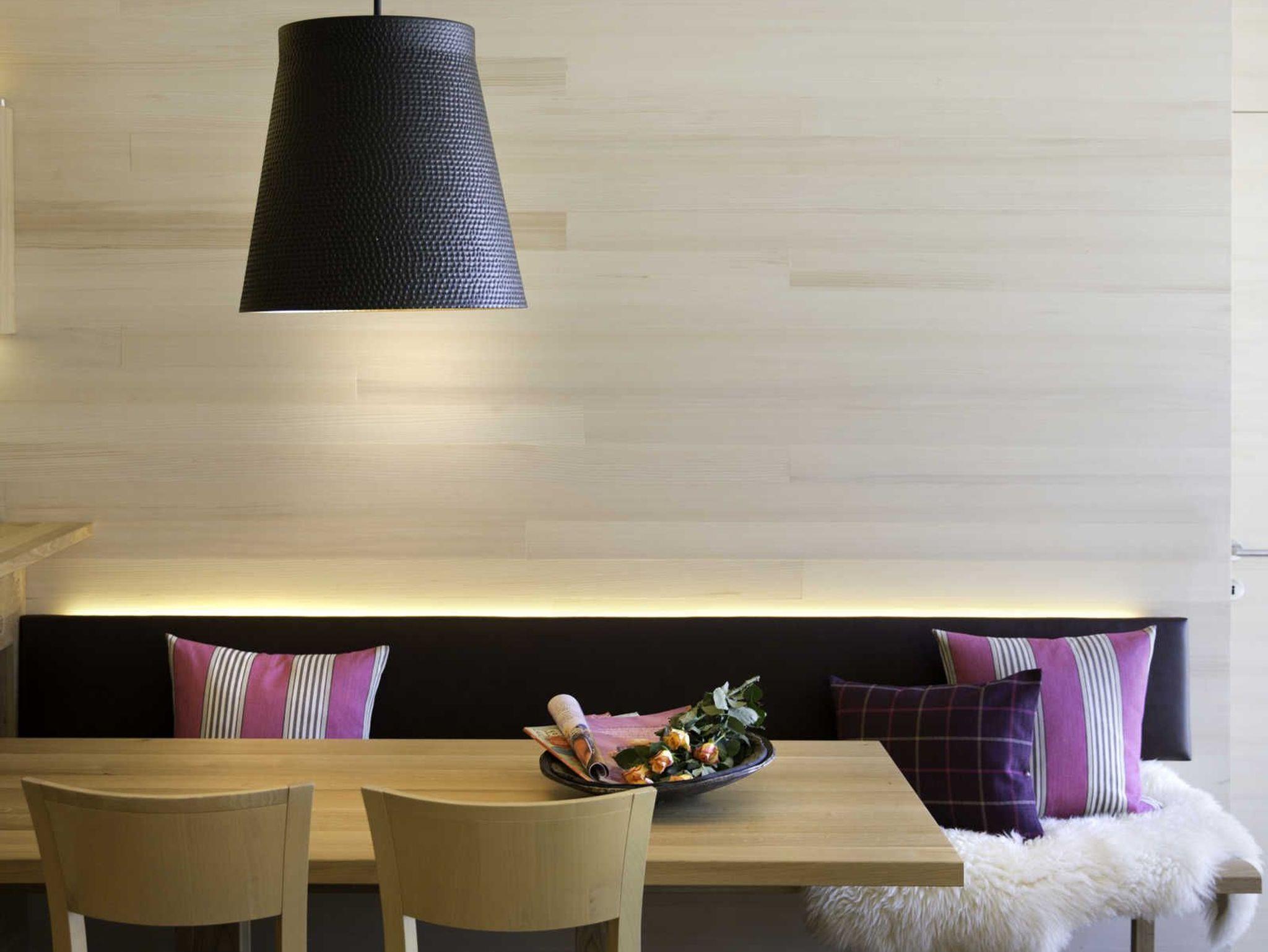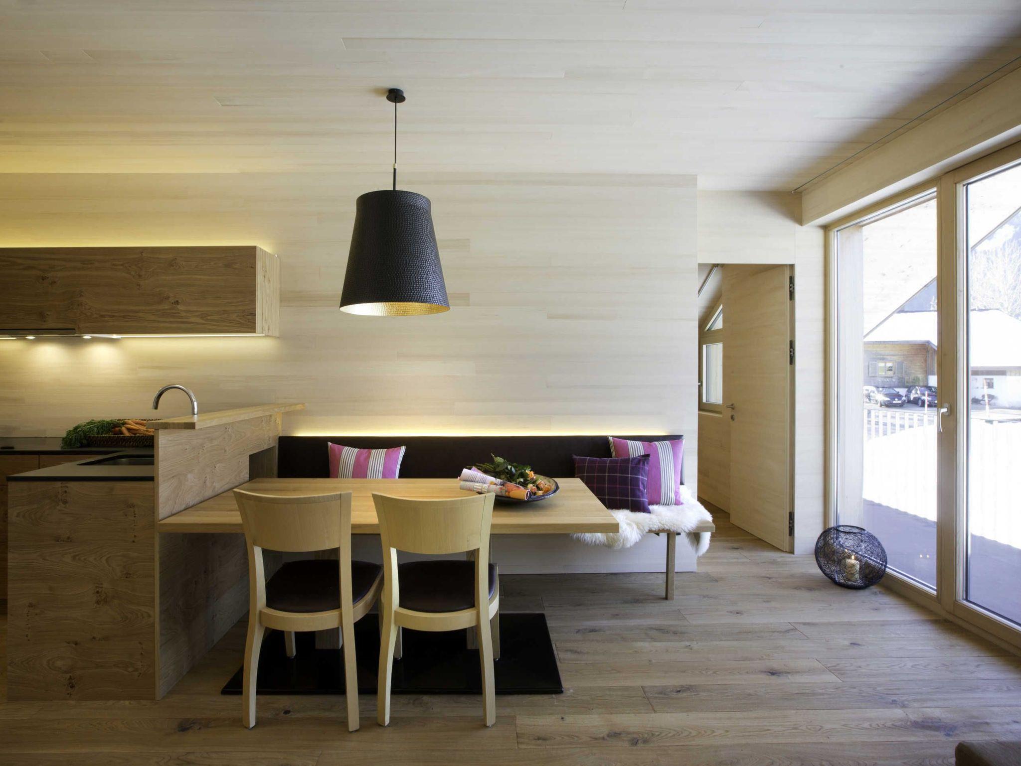 Alle Apartments sind mit hochwertigen Holzböden (Eiche Parkett), Wandvertäfelungen aus heimischer Weißtanne, Decken aus heimischer Weißtanne und Lehmputz ausgestattet.