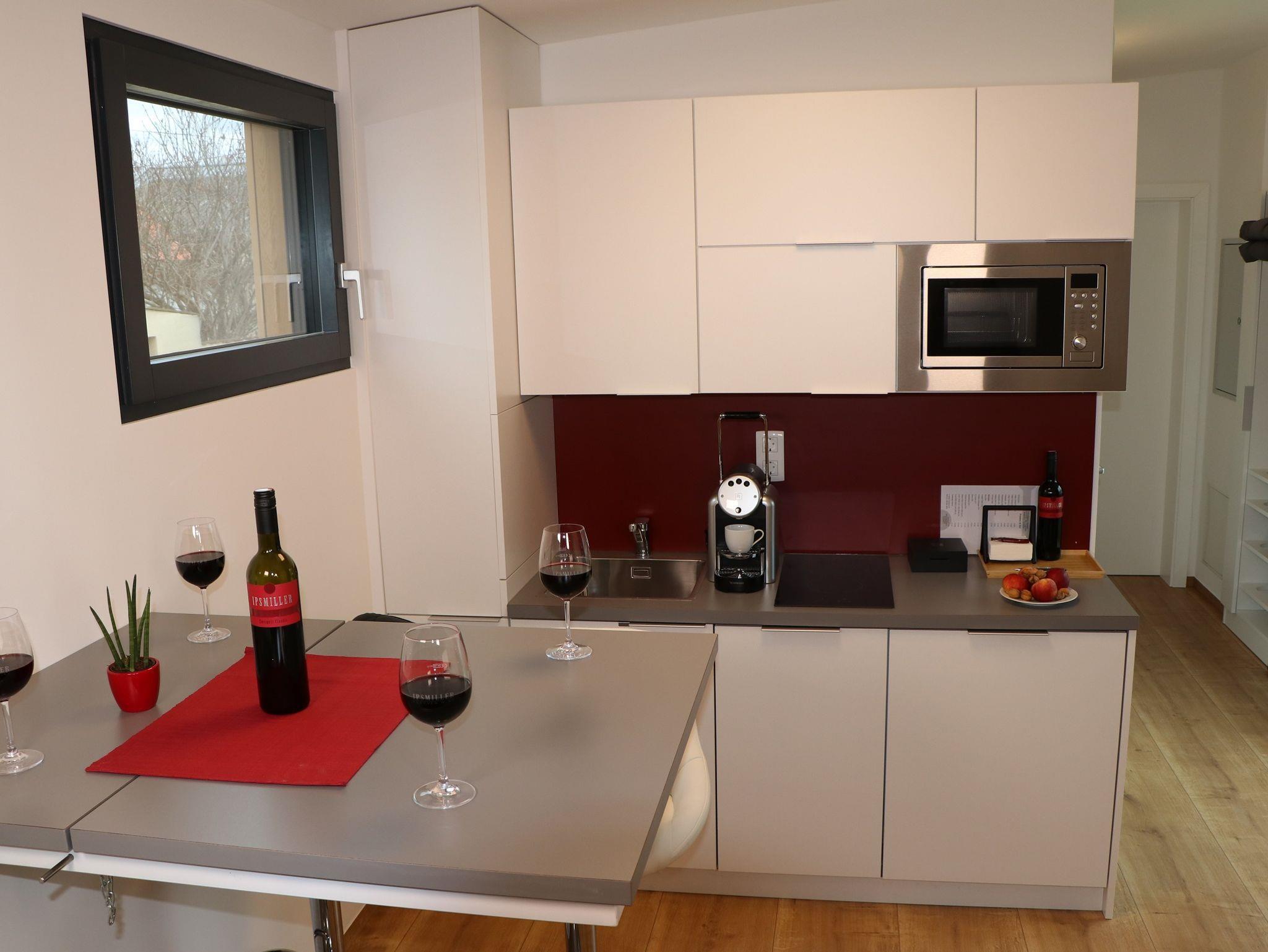 Im Appartement gibt es TV, W-LAN Anschluss und kleine Weinbar.