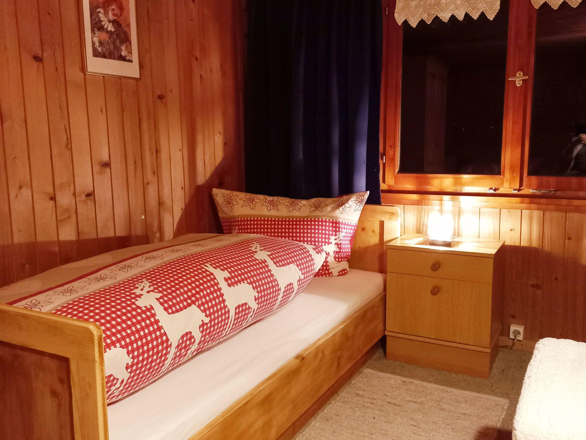 Bitte beachten, Deckenhöhe ca. 190 cm im Schlafzimmer, in der Küche und im Schopf etwas höher. Die Einzelbetten im zweiten Schlafzimmer sind nur 1,80 m und eher für Kinder geeignet. Das zweite Schlafzimmer ist nur über das erste Schlafzimmer erreichbar. Es gibt keinen separaten EIngang über den Flur.