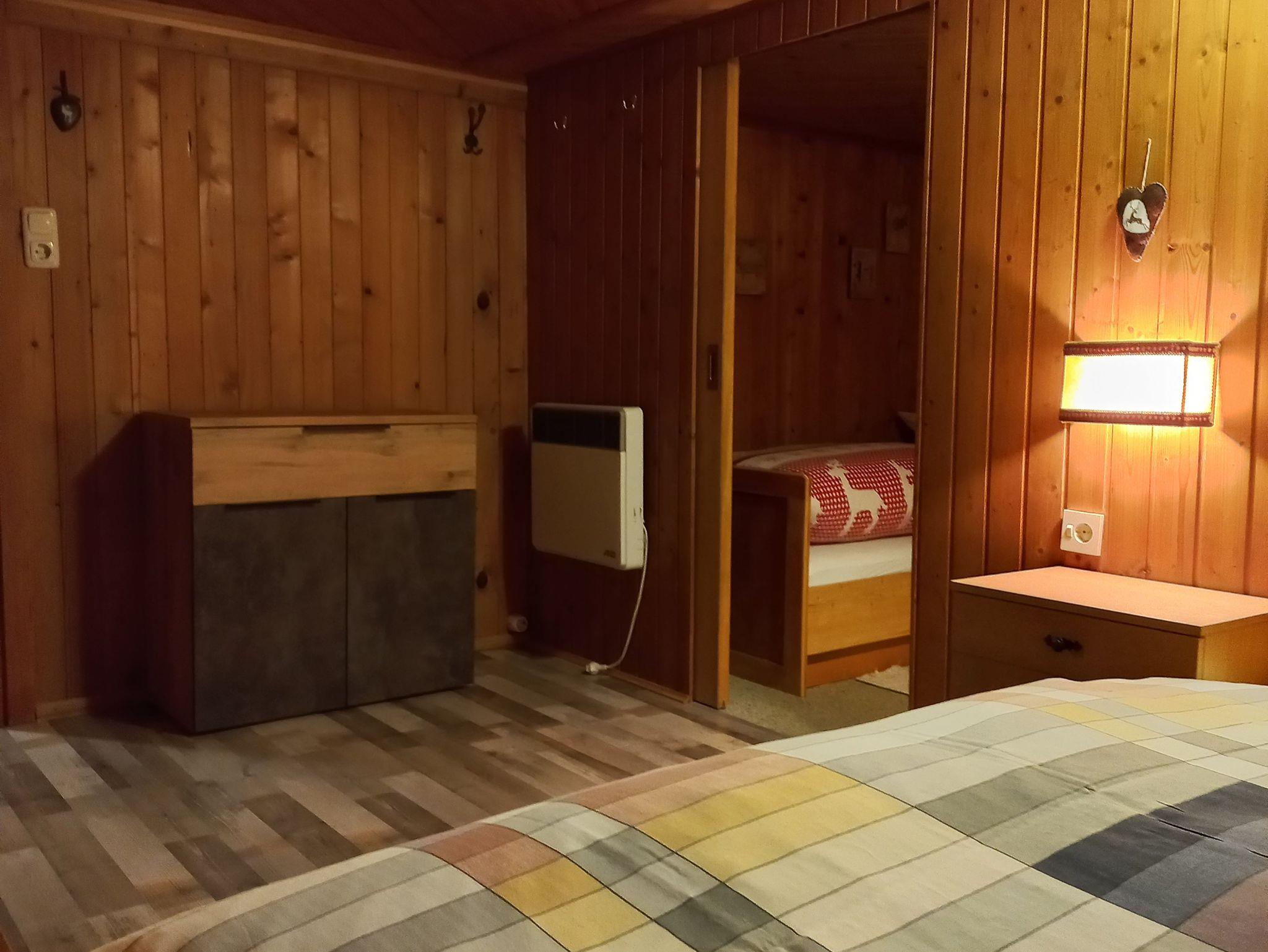 Das Elternschlafzimmer hat ein Doppelbett mit Nachtkästchen, und einen Kleiderschrank. Im Kinderzimmer stehen zwei getrennte Betten mit Nachtkästchen, ein kleiner Schreibtisch und ein Kleiderschrank.