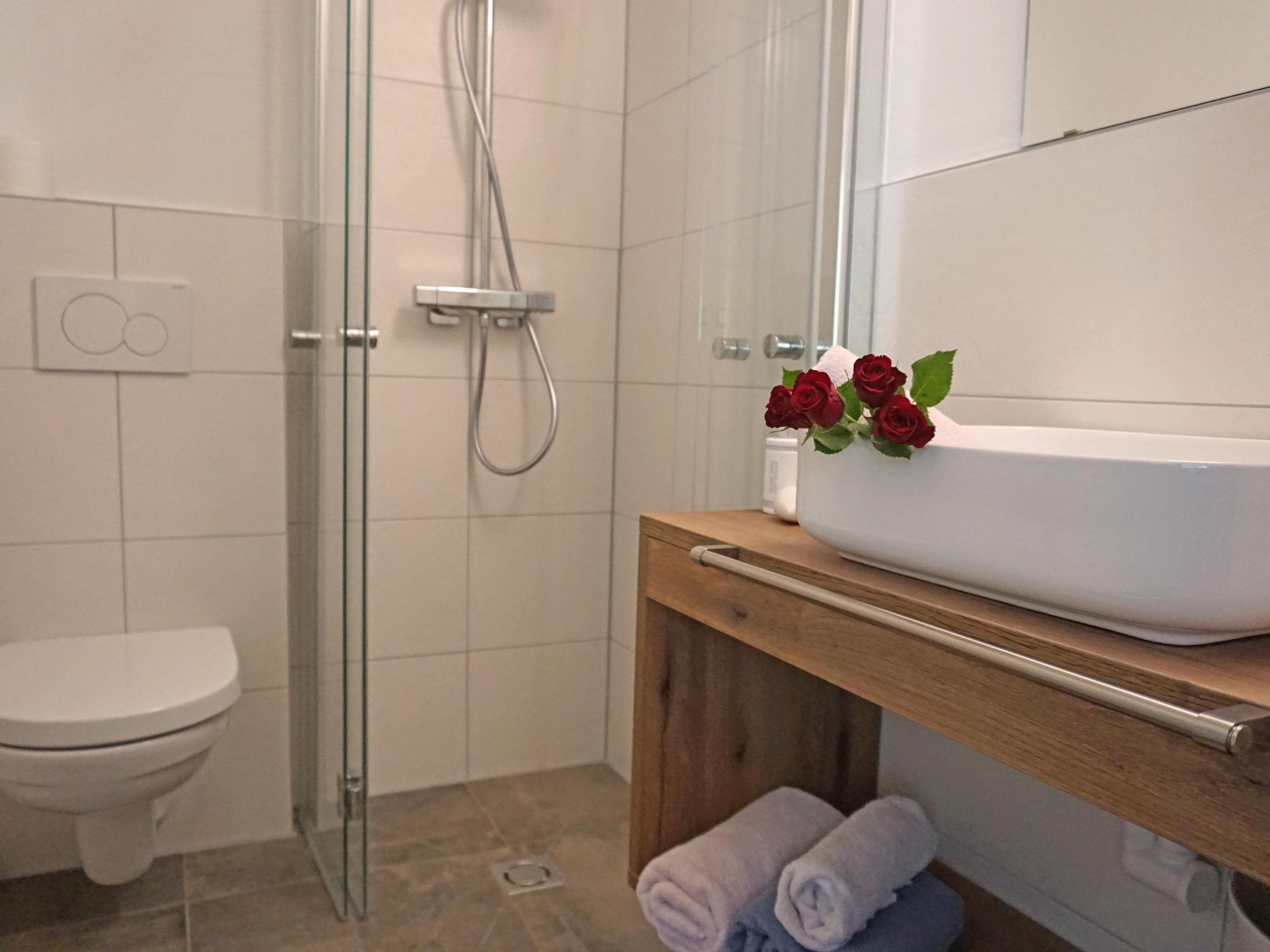 "Hirsch", 5-room apartment 120 m2, on the upper floor. Spacious and bright, comfortable and tasteful furnishings: entrance hall. 2 double bedrooms, each room with shower/WC. Exit to the balcony. 1 double bedroom with shower/WC and satellite TV (flat screen). Exit to the balcony. 1 room with 2 bunk beds, 1 double bed and shower/WC. Exit to the balcony. Kitchen-/living room (oven, dishwasher, 4 ceramic glass hob hotplates, toaster, kettle, microwave, freezer) with dining table and satellite TV (flat screen). Exit to the balcony. Large balcony, south facing position and north facing position. Balcony furniture. Beautiful view of the lake and the mountains. Facilities: sauna (extra). Internet (WiFi, free). Maximum 1 pet/ dog allowed. When there are less than the maximum number of guests staying at the property, not all of the bedrooms will be available for use.