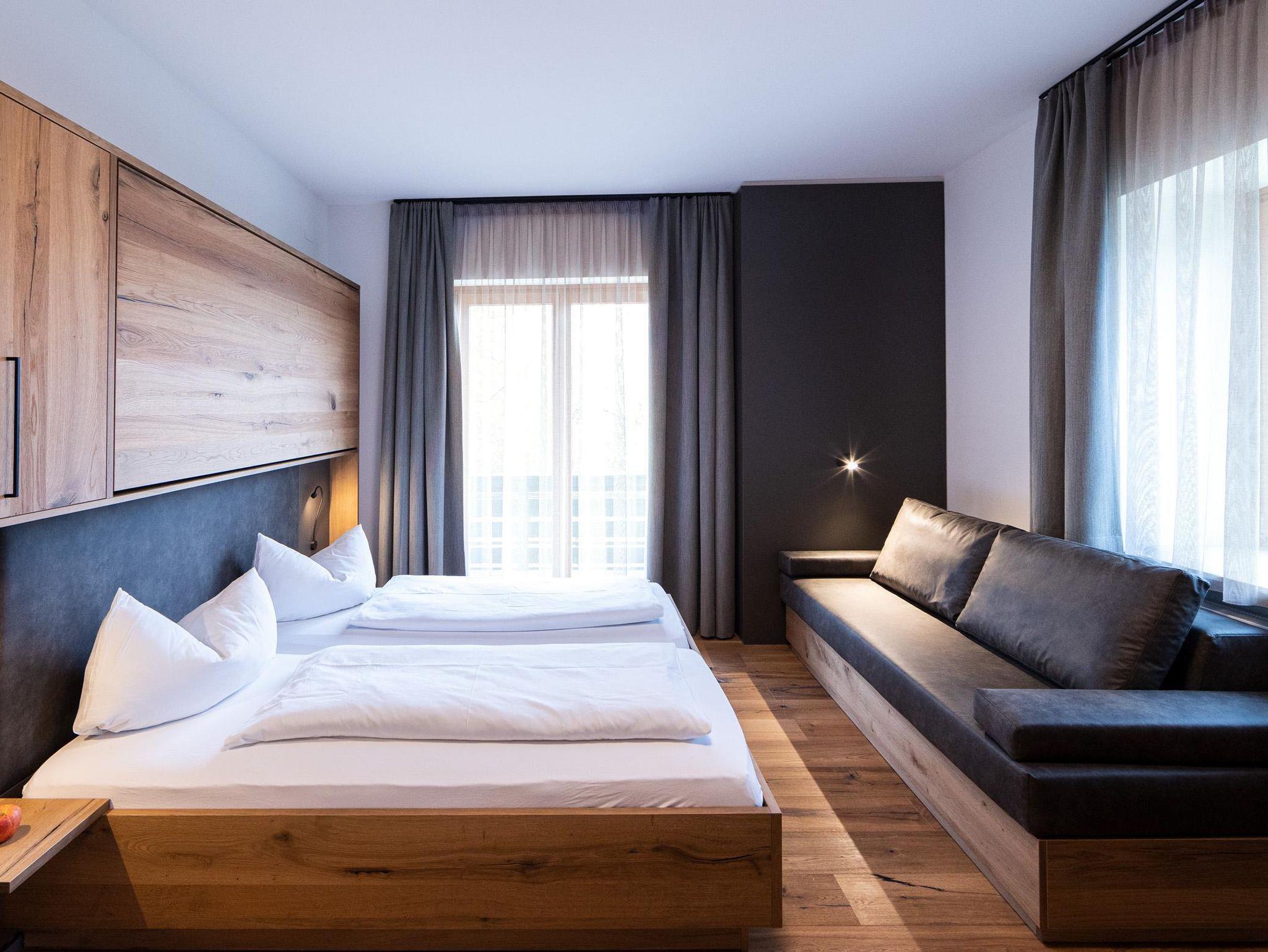 Unser modernes und klimatisiertes Stil-Mehrbettzimmer mit Balkon bietet großzügig Platz für vier bis fünf Personen.