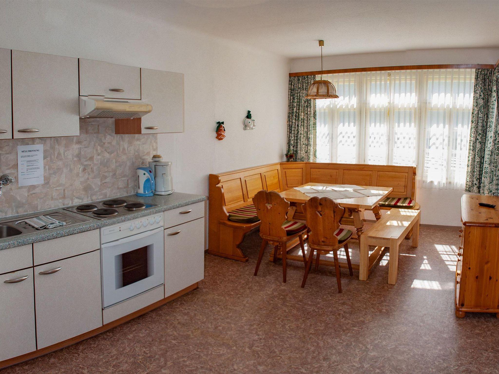 Vorraum, 1 große Wohnküche mit gemütlicher Eßecke, SAT-TV, Küche mit 4-Plattenherd,