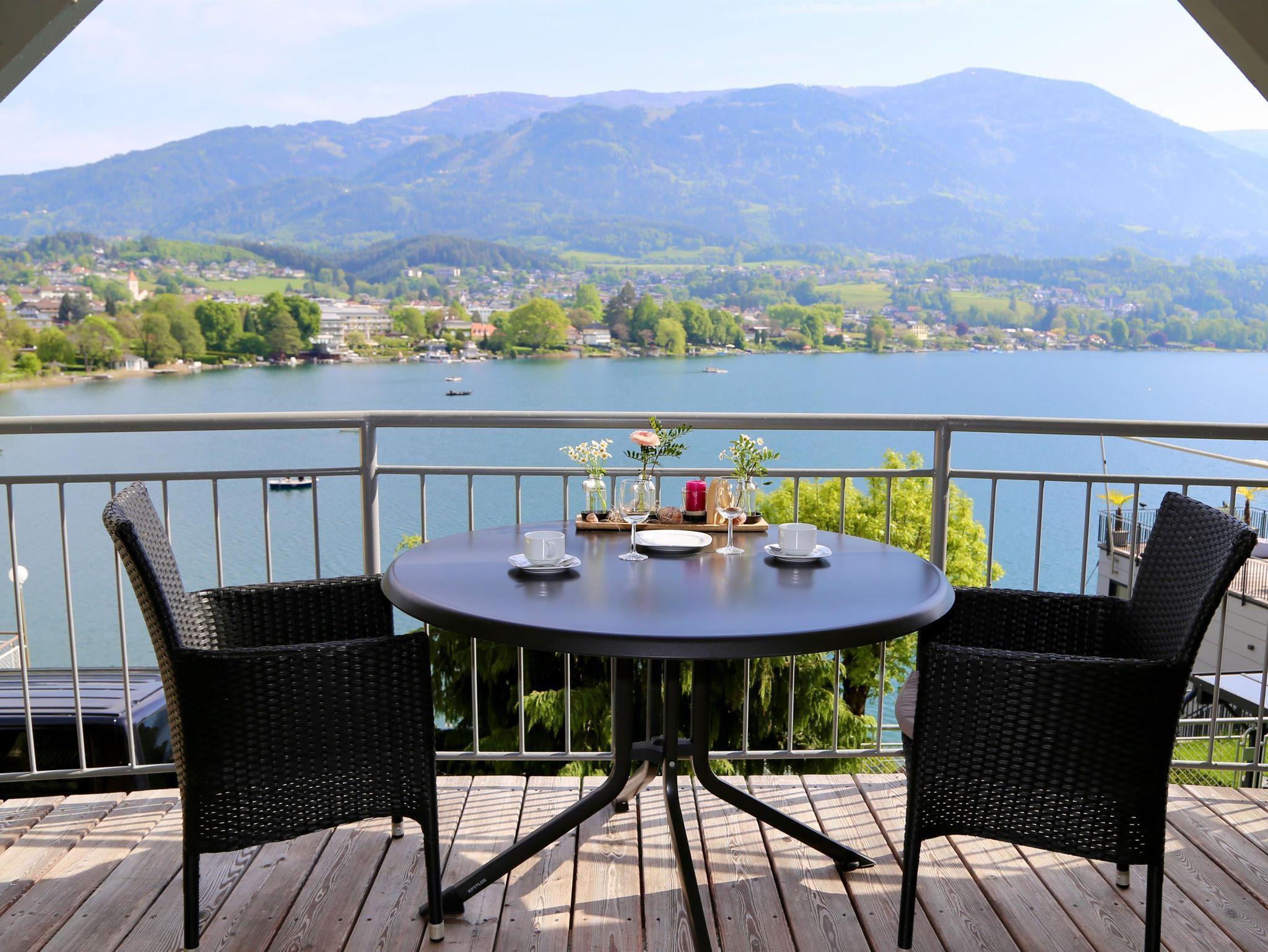 Großer möblierter Balkon seeseitig mit traumhaften Panoramablick.
