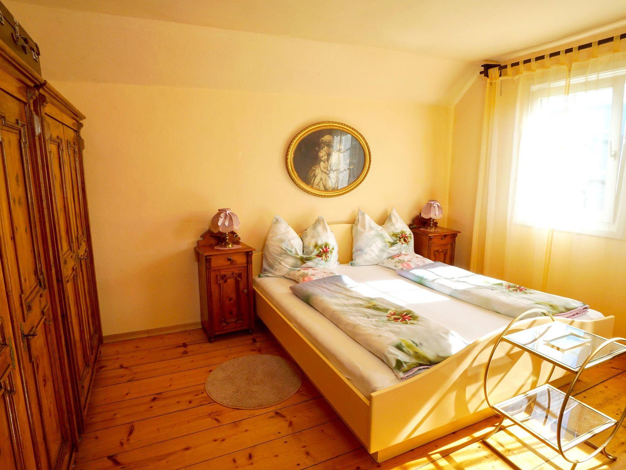 Die 56 m² große Ferienwohnung „Seeblick“ ist ideal für 2 Personen und bietet ein behagliches Schlafzimmer mit Doppelbett und schönem Schiffboden-Tramboden.