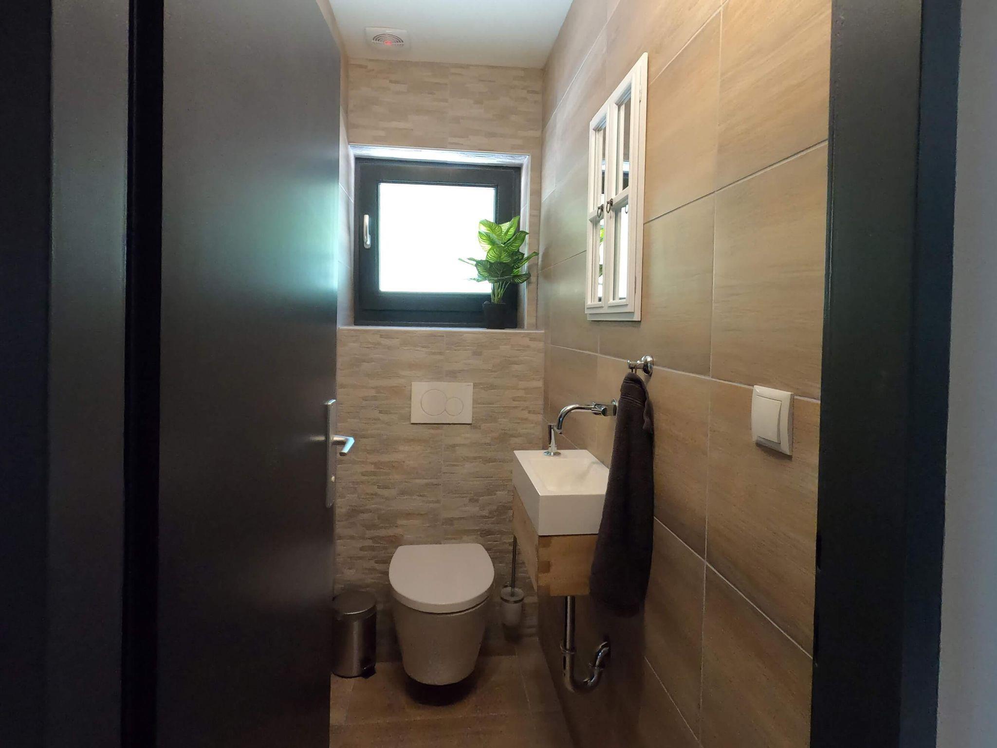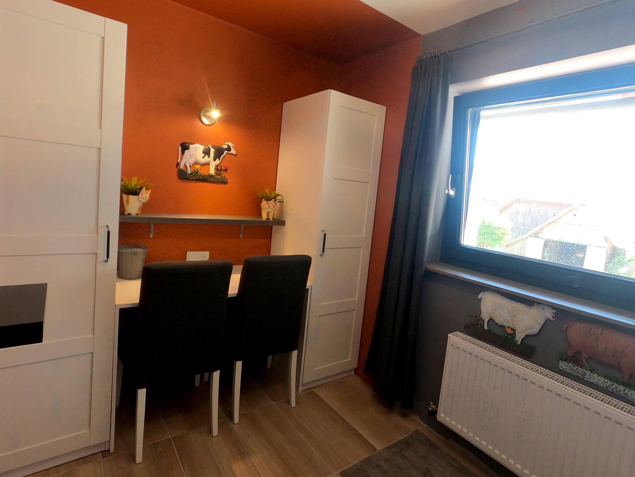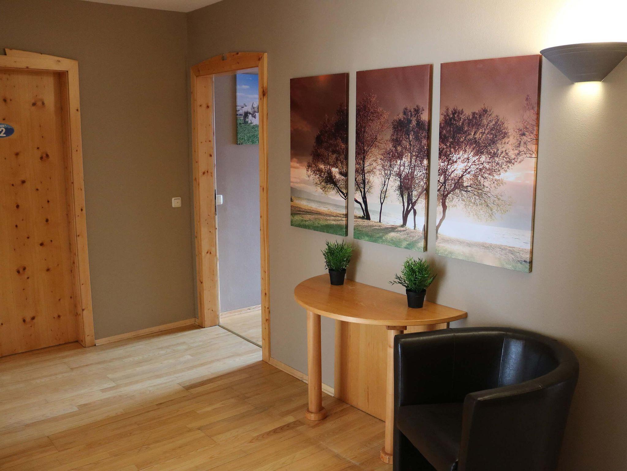 Wohnung bestehend aus: großer, geräumiger Halle mit Garderobe, großem Wohnzimmer mit offener (Wohn-)Küche. Die Küche ist ausgestattet mit: Glaskeramikkochfeld, Backofen, Mikrowelle, Geschirrspüler, Wasserkocher, Kaffeemaschine, Spüle mit fließendem kaltem und warmem Wasser, Besteck, Pfannen und allen anderen Küchengegenständen. 3 Schlafzimmer für maximal 5 Personen. 1 Schlafzimmer mit einem großen Doppelbett (180x200), 1 Schlafzimmer mit 2 Einzelbetten (90x200) und 1 Schlafzimmer mit 1 Einzelbett (90x200) für 1 Person/Kind. Badezimmer mit Walk-in Dusche, Waschbecken mit fließendem kaltem und warmem Wasser. Getrennte Toilette. Die freistehende Wohnung befindet sich im Erdgeschoss und ist über eine kleine Treppe mit 3 Stufen vom Straßenniveau aus zugänglich. Parkplätze stehen kostenlos zur Verfügung. Außerdem können Sie den großen Innenhofgarten mit Terrasse und Spielplatz in unserem angrenzenden Pensiongebäude nutzen.