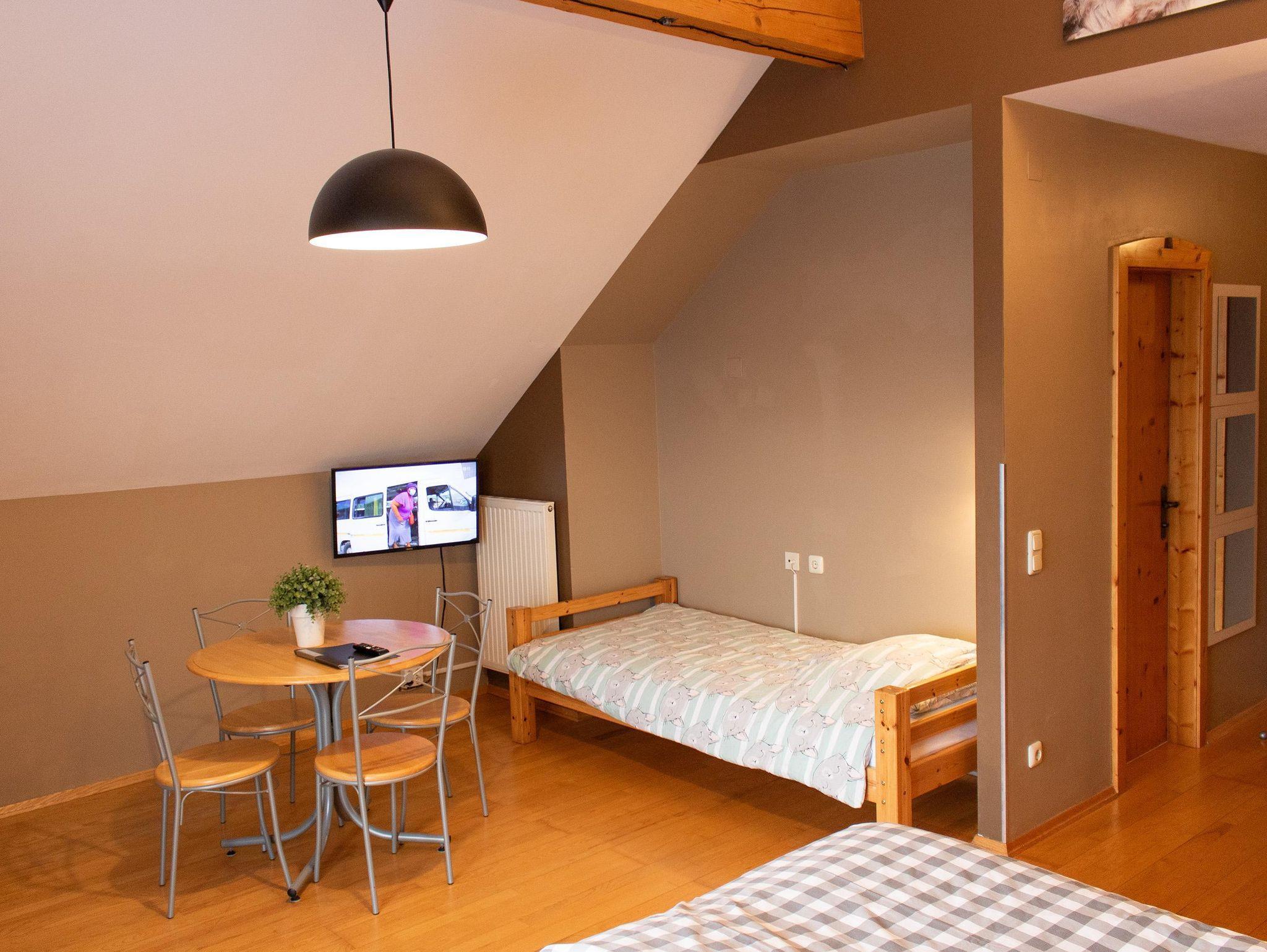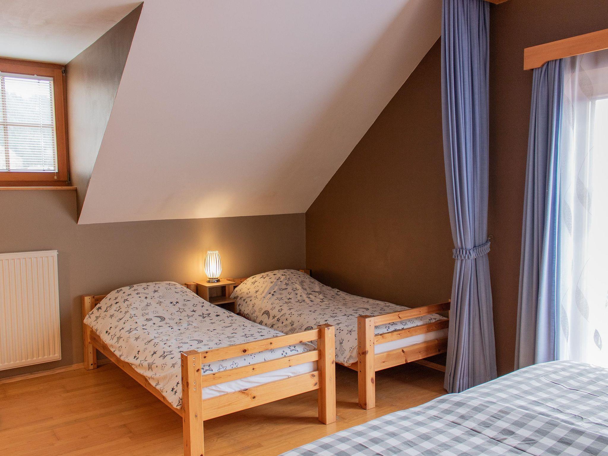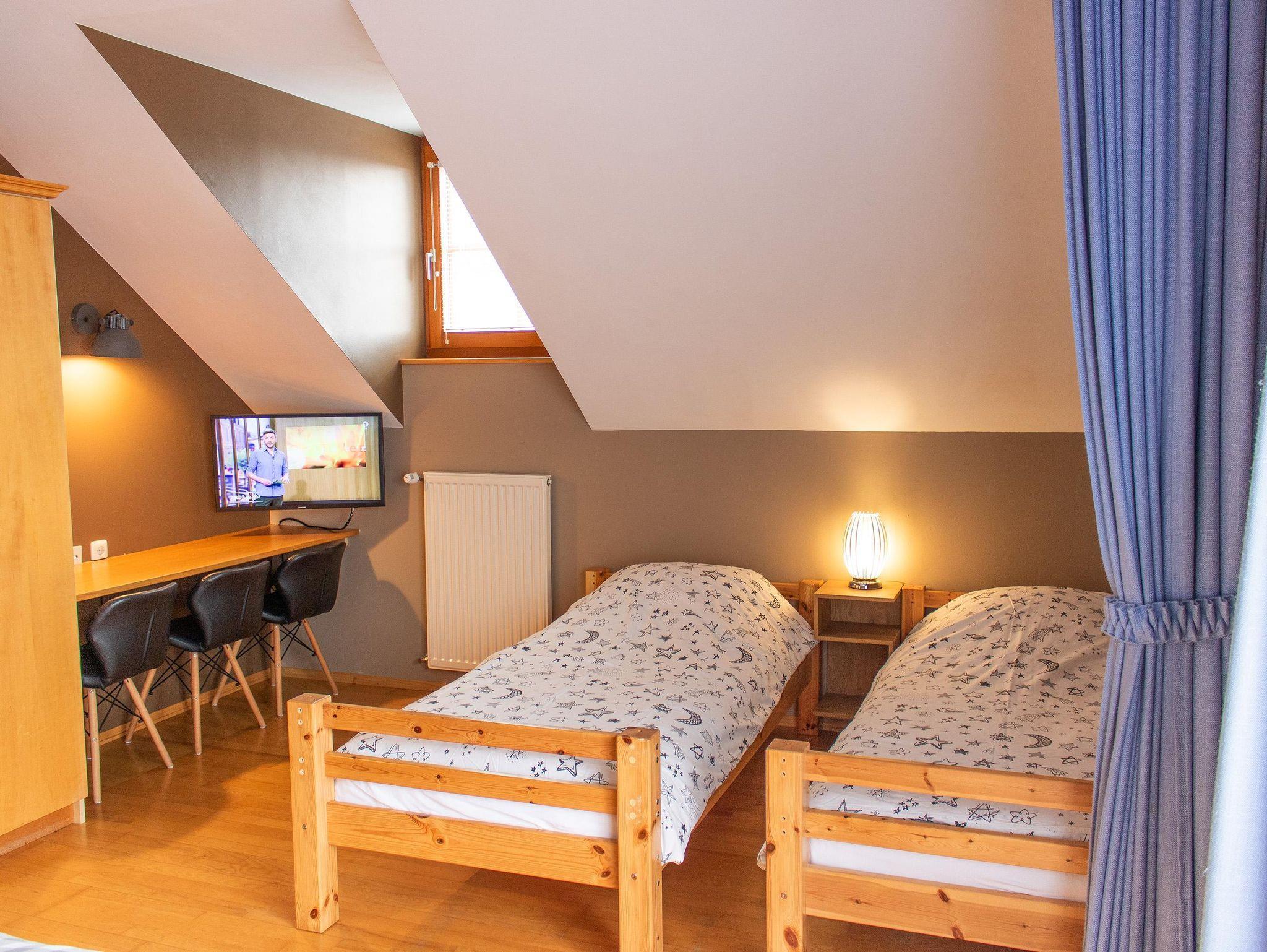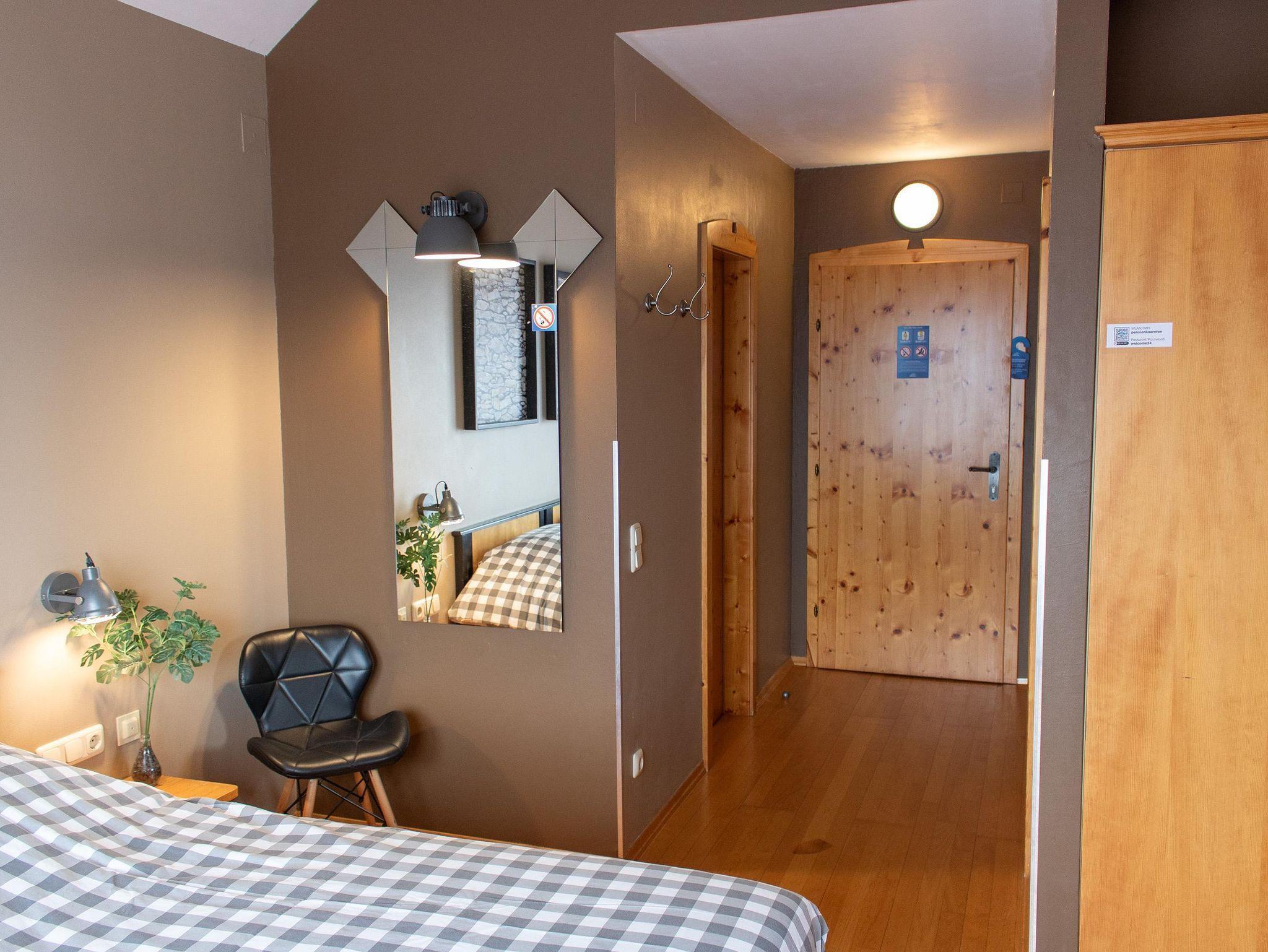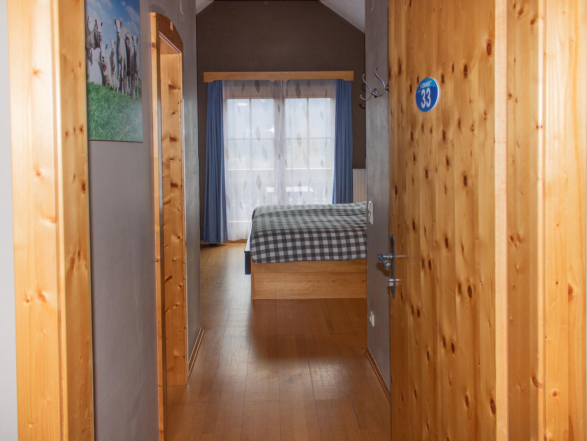 Geräumiges Familienzimmer, geeignet für 4 Personen, bestehend aus: einem Doppelbett und zwei Einzelbetten (90x200). Mit eigenem Bad und separater Toilette und Balkon mit schöner Aussicht auf die Burg Sommeregg und das Goldeckgebirge.