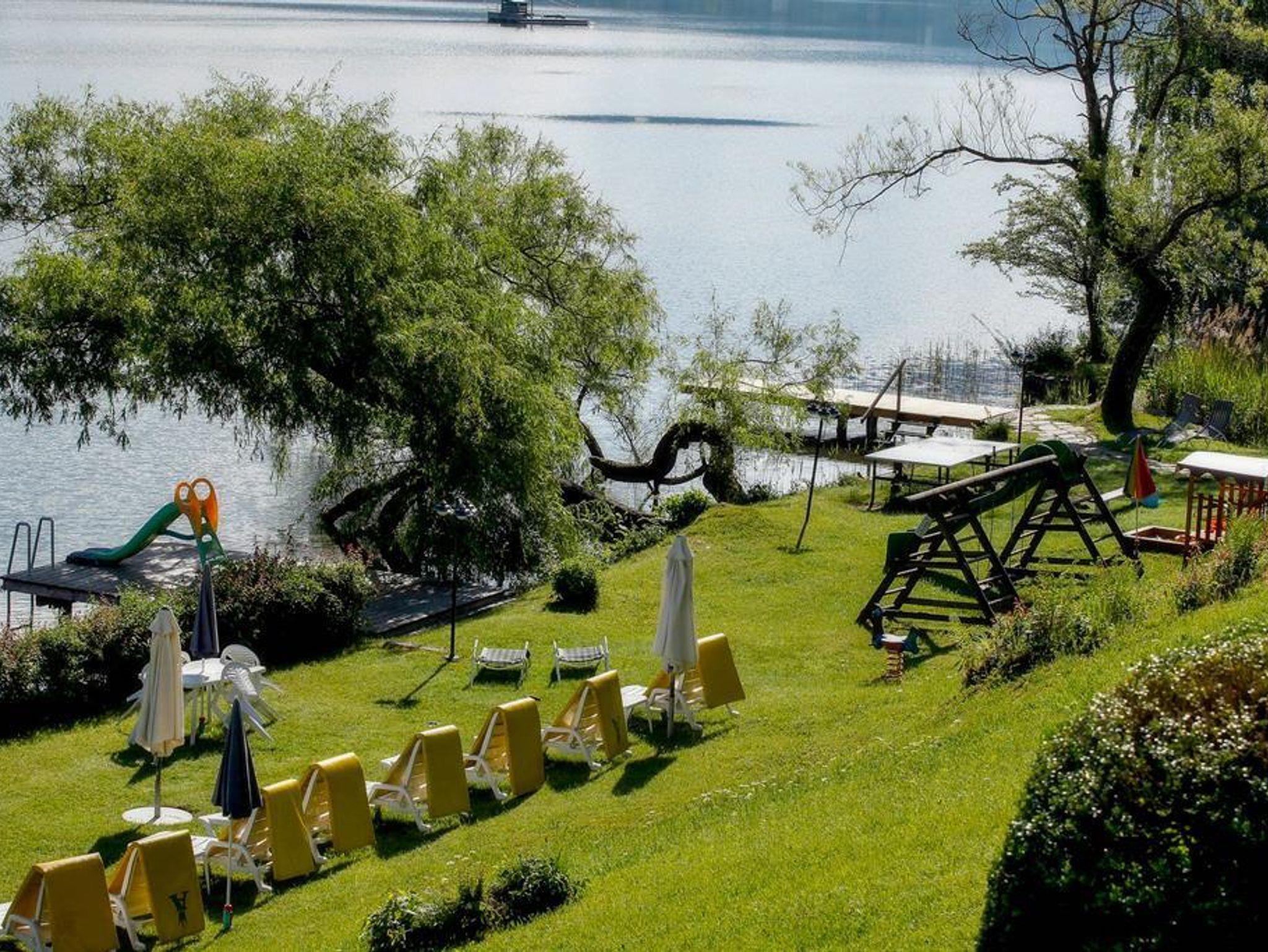 Strand: Sonnenliegen, Sonnenschirme, Gartenmöbel, Ruderboote, Tretboot, Tischtennis, Kinderspielplatz, kl. Wasserrutsche, Sprungbrett
