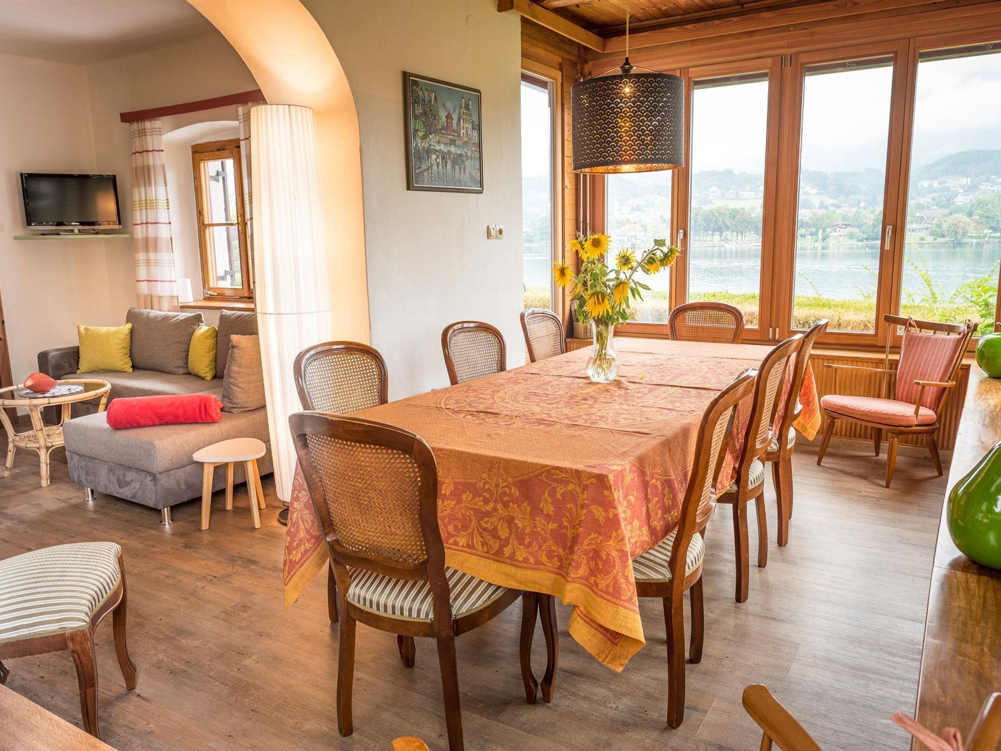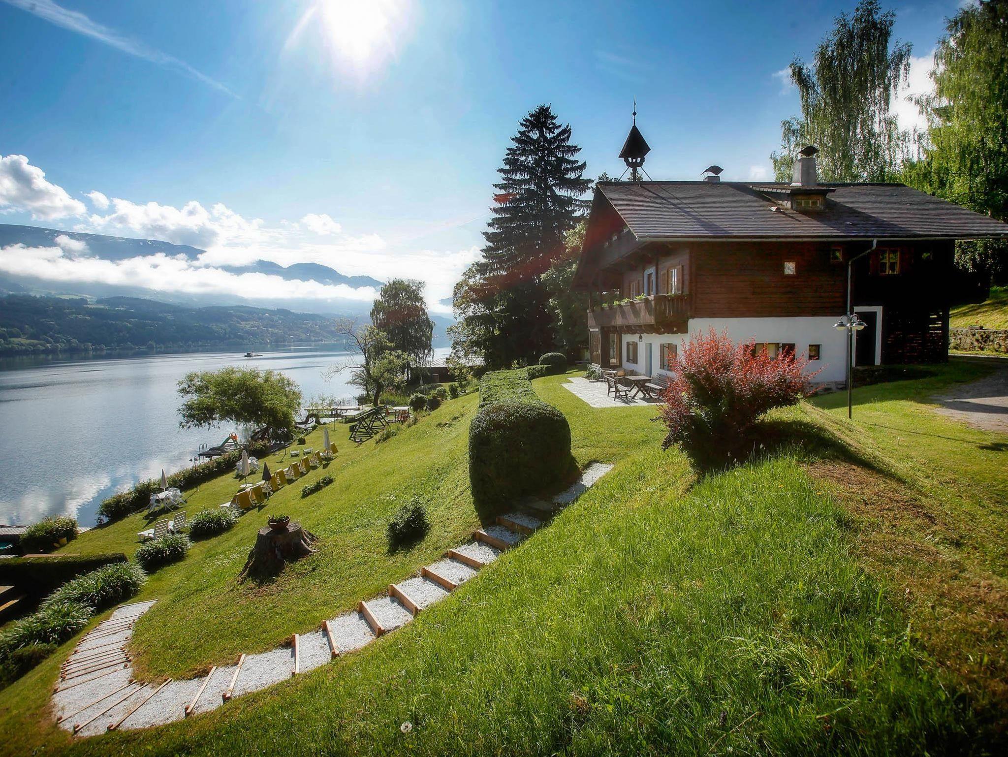 Seehaus mit 1DZ, 1MZ, 1 EZ, Baadezimmer, 2 WC extra, sehr schöner Wohnraum mit seperatem Essbereich, Satellitenfernsehen, offener Kamin zur Gemütlichkeit, Küche-komplett eingerichtet - Geschirrspüler, Vorratskammer Umlaufender Balkon mit Veranda und Terrasse mit wunderschöner Aussicht auf den Millstättersee und den Nockbergen. W-LAN verfügbar. Waschmaschine und Wäschetrockner.