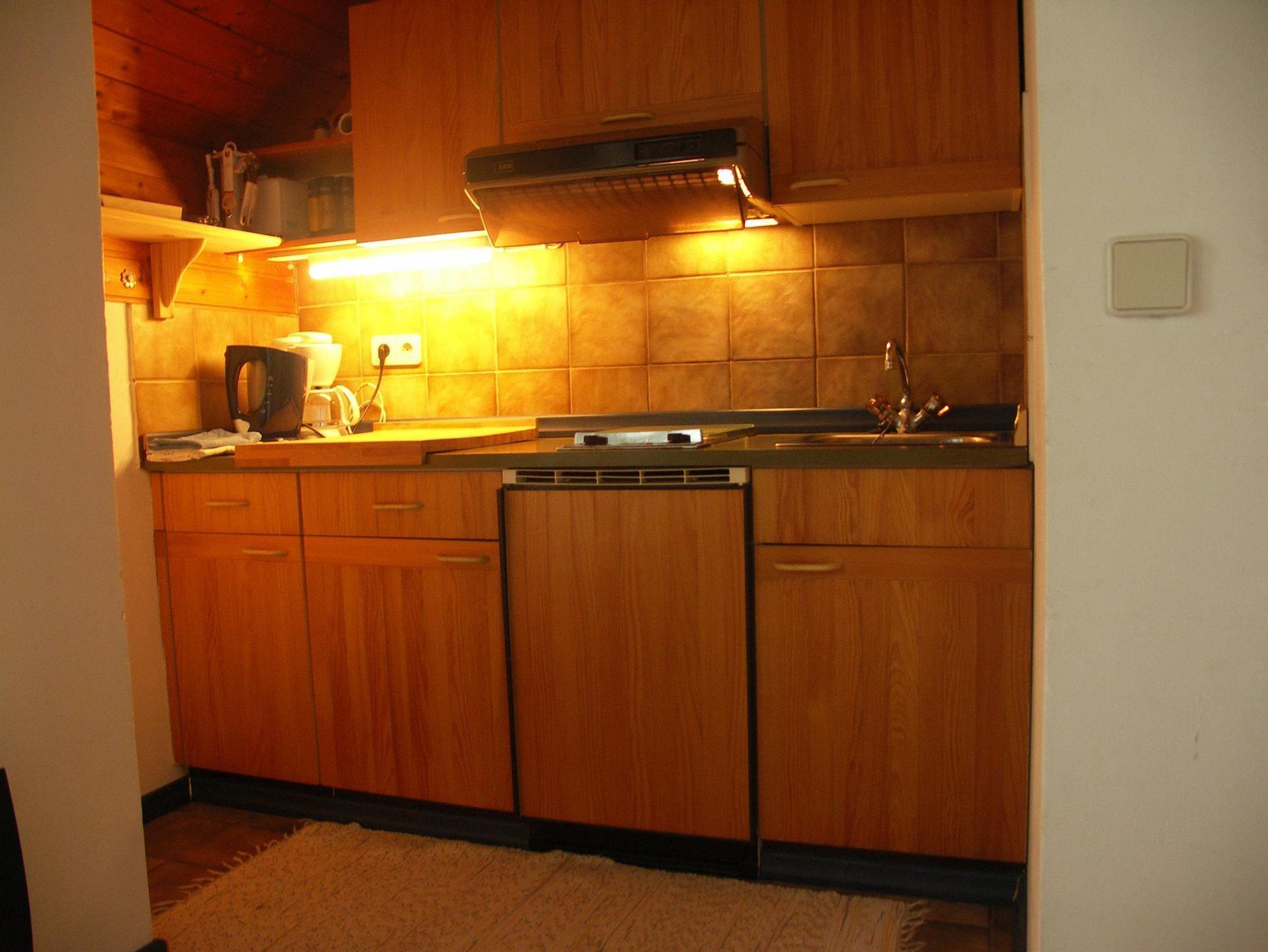 Kochecke im Wohnzimmer mit SAT - TV, Flachbildschirm