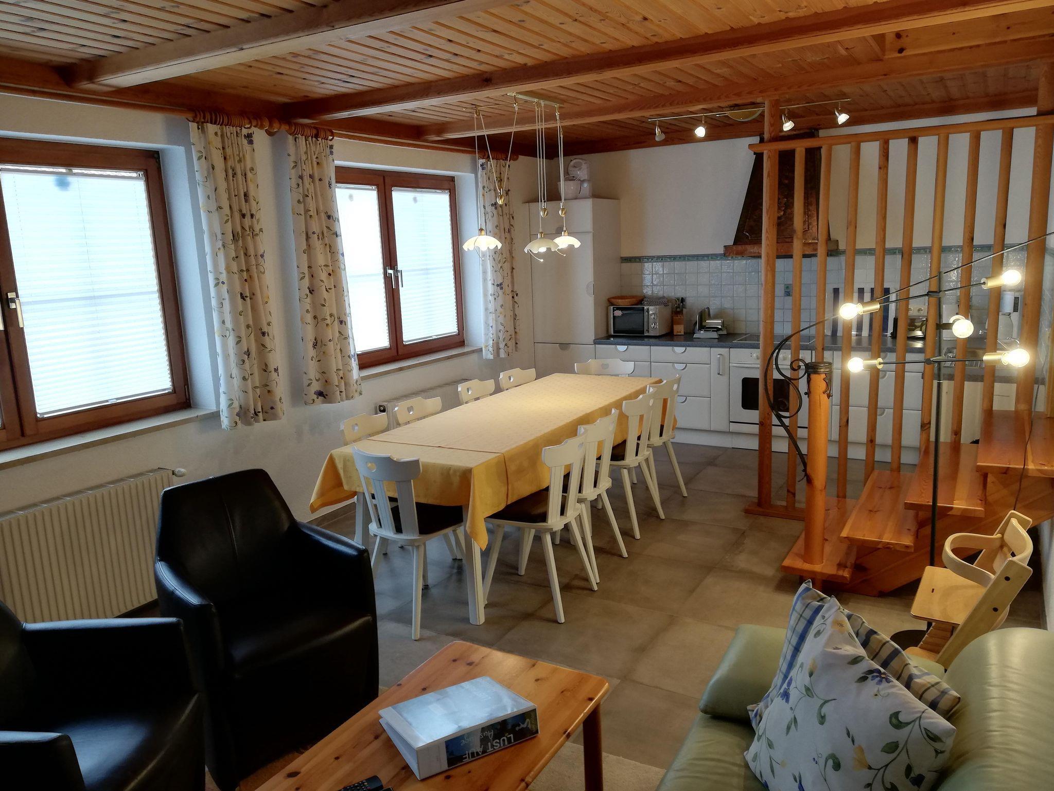Ferienhaus Mörtbauerhof Zwei Stockwerke, vier Schlafzimmer, zwei Vorräume, zwei Flat TV mit SAT, zwei Duschen mit WC, grosse Wohnküche im Parterre, Kaffeeküche im ersten Stock, gemütliche Sitzterrasse direkt vor dem Ferienhaus