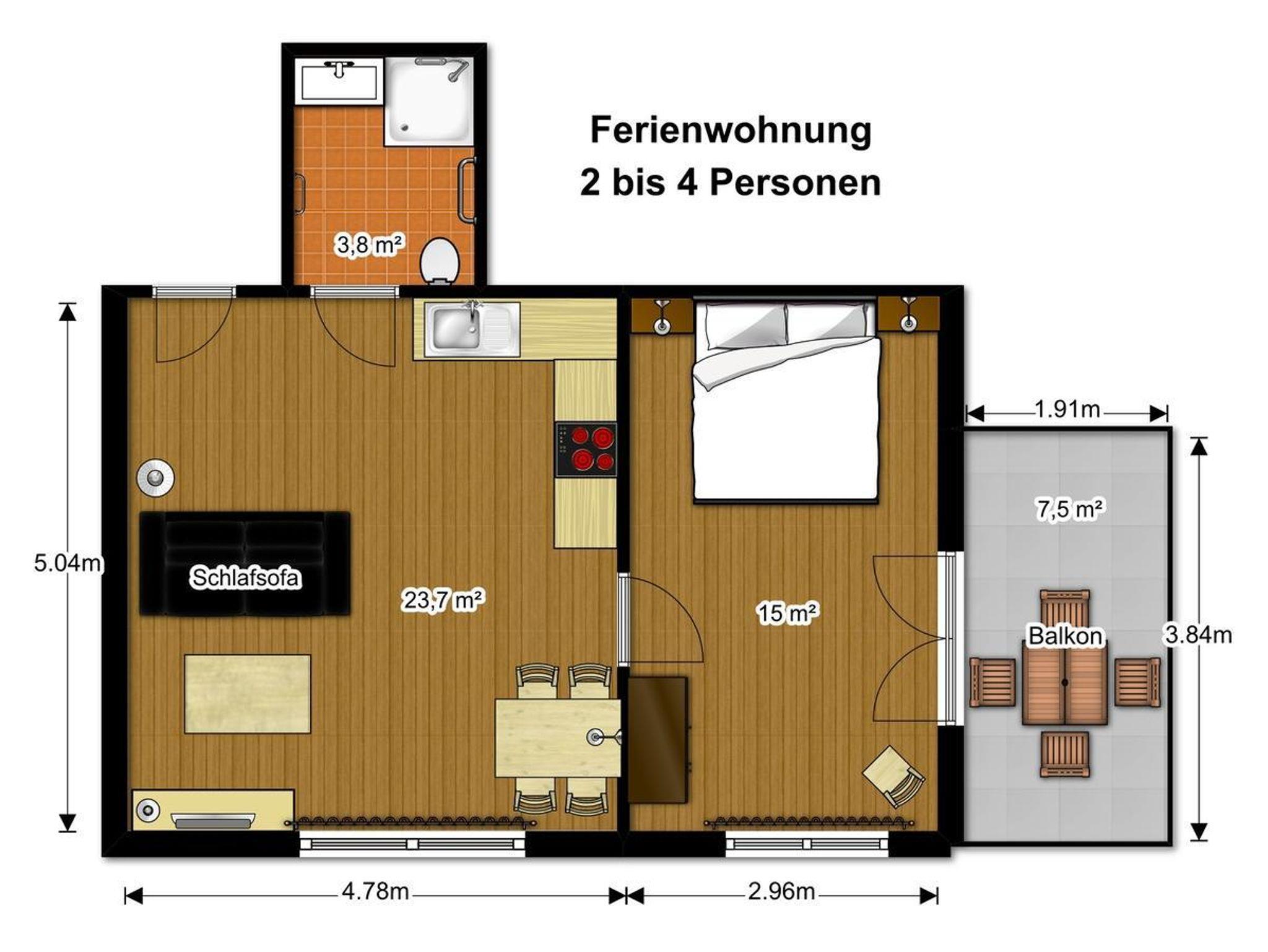 Ferienwohnung mit Balkon und Bergblick (2-4 Personen):
