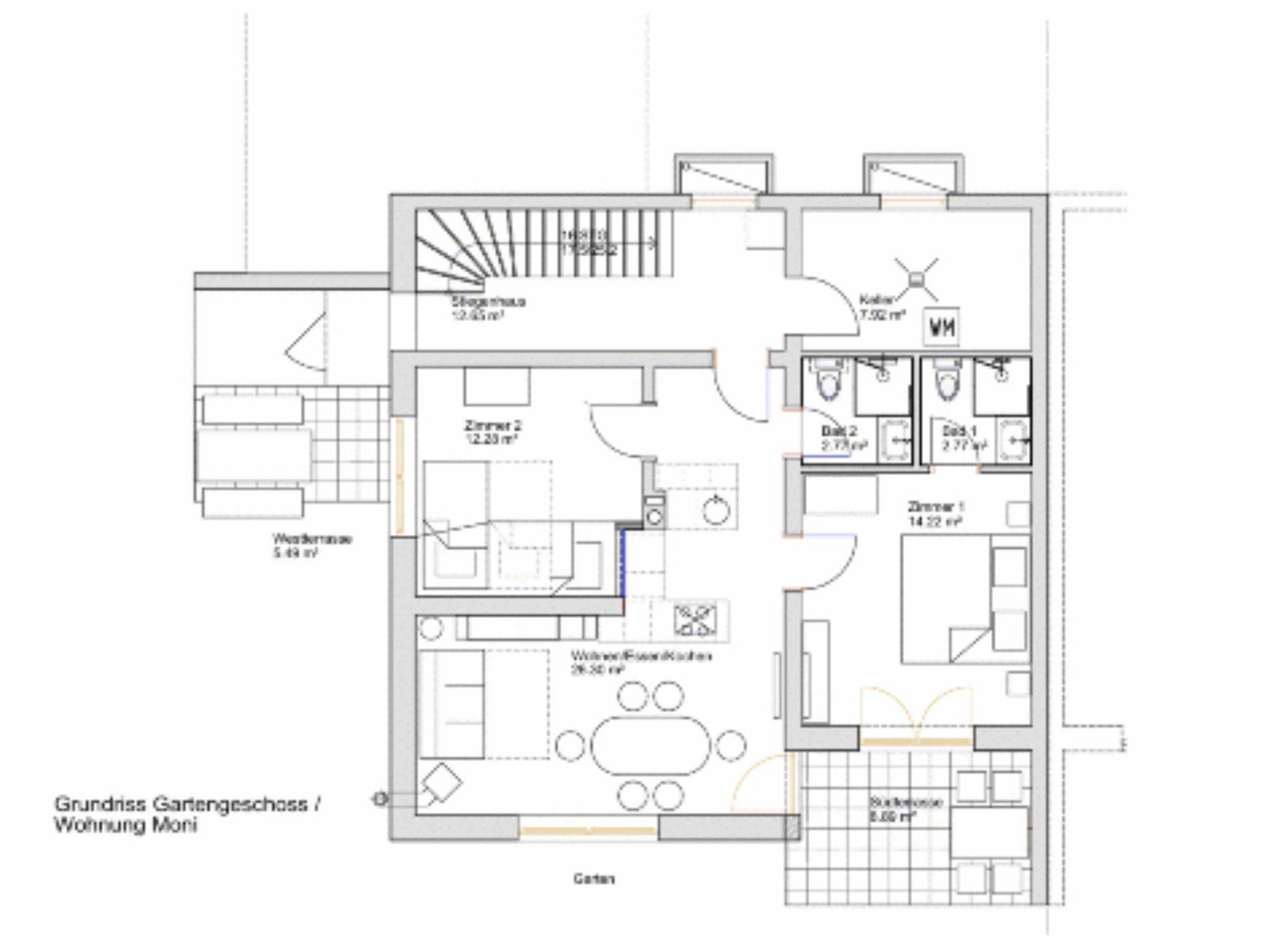 In unserer Wohnung Gusti verbringen Sie Ihren Urlaub in einer modern ausgestatteten, 96m² großen Wohnung in ruhiger Südhanglage. Die Wohnung befindet sich im Erdgeschoss einer Doppelhaushälfte und wurde im Jahr 2016 vollständig saniert/renoviert.