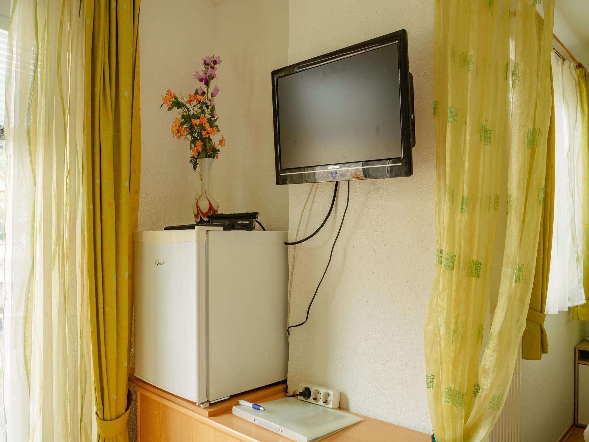 Komfortables ausgestattetes Zimmer mit Dusche/WC, Fön, Radio und Sat-TV, Balkon,