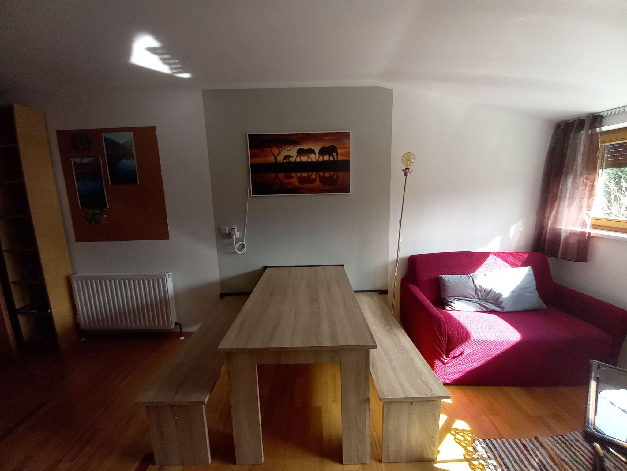 Etagenwohnung (abgeschlossener Wohnbereich, 2 -5 Personen, ideal für Kinder) bestehen aus: Vorraum ca. 8,5 m² Wohnküche ca. 23 m² Schlafraum ca. 25,5 m² Sauna incl. Ruheraum mit Waschbecken, Dusche und Tauchbecken ca. 15 m² Separates WC mit Waschbecken ca. 3,5 m² Carport Lage: mitten im Grünen (keine unmittelbaren Nachbarn) an einer wenig befahrenen Nebenstraße EKZ, Bank, Bus/Bahnstation in 700 m Entfernung Restaurants 100m Ins Ortszentrum 1,5 km Zum Attersee 2 km Freibadeplatz am Attersee mit kostenloser Parkmöglichkeit 5 km Fahrradweg führt am Haus vorbei Autobahnanschluss 1,5 km Flughafen 65 km (Salzburg) Ausstattung: TV, Musikanlage, WLAN, Wohnküche komplett, Sauna mit Ruheraum und Nassbereich: Dusche, Waschbecken, Tauchbecken, Liegen und Fitnessgeräte. Terrassen – und Gartenbenützung (eigener Gästebereich mit Sitz und Essgarnitur, Gartenliegen, Gartendusche) Grillplatz(Holzkohle - Grill steht zur Verfügung), Wäscheleine. Auf Wunsch: Frühstück im separaten Frühstücksraum Wäscheservice