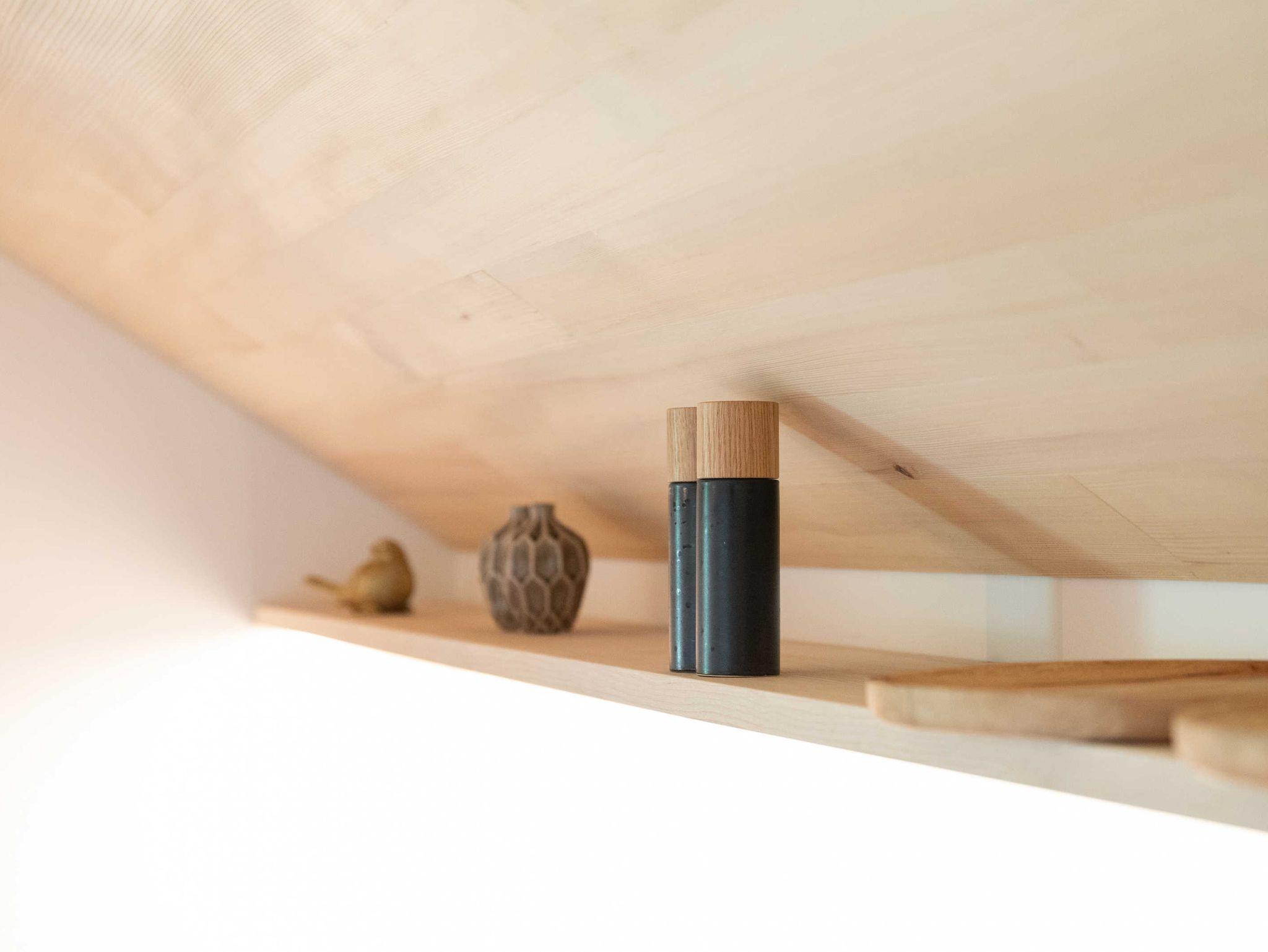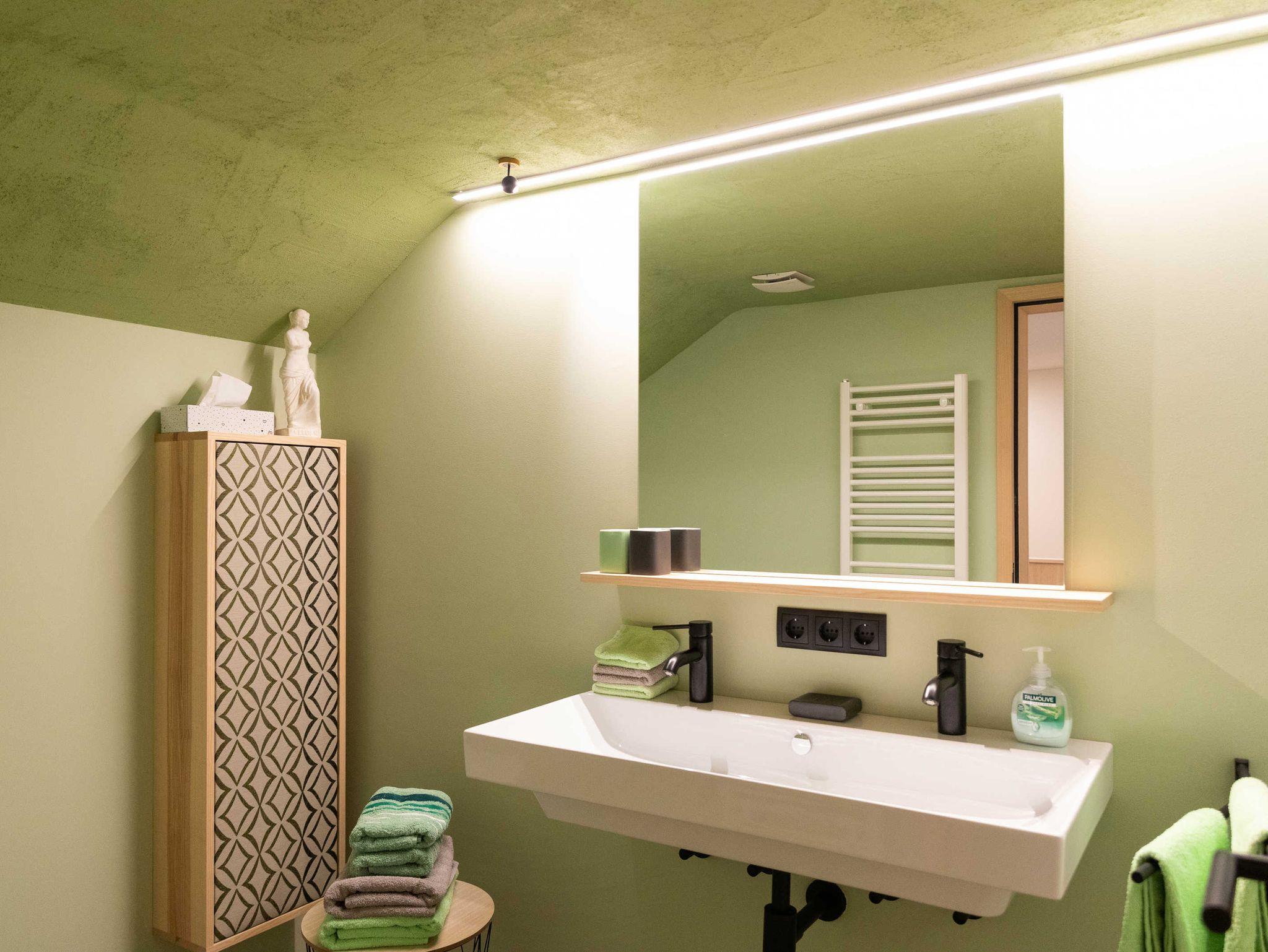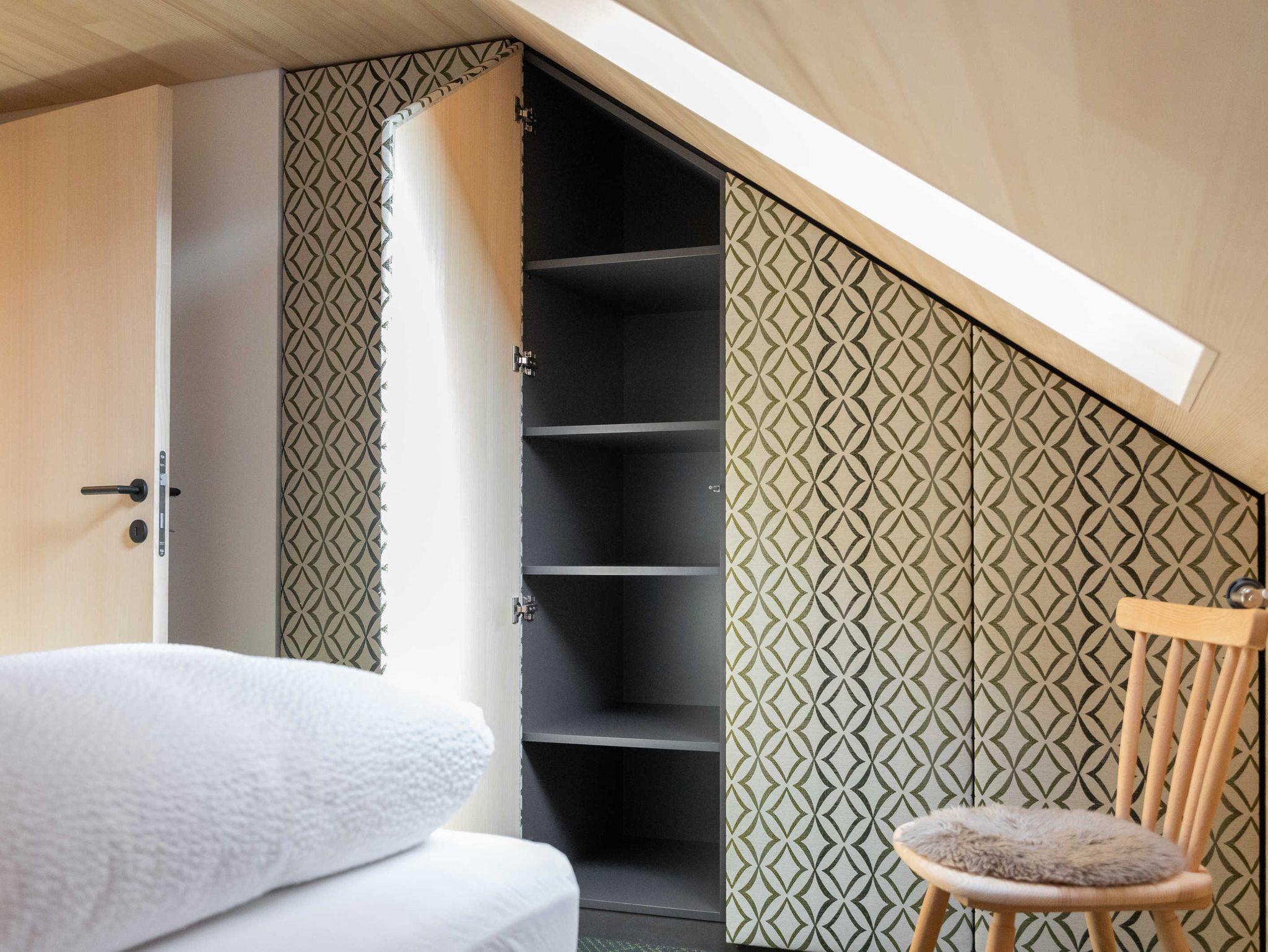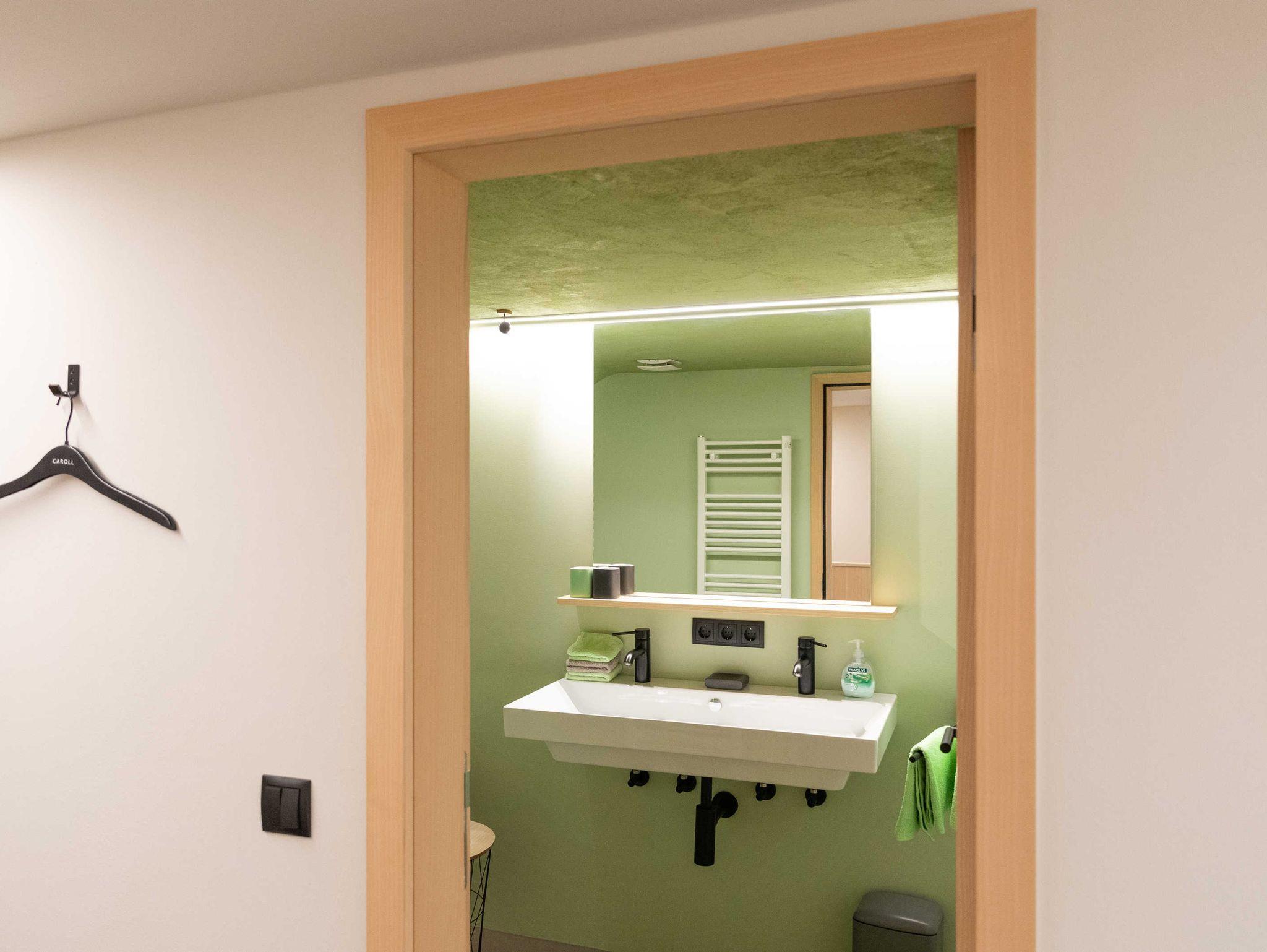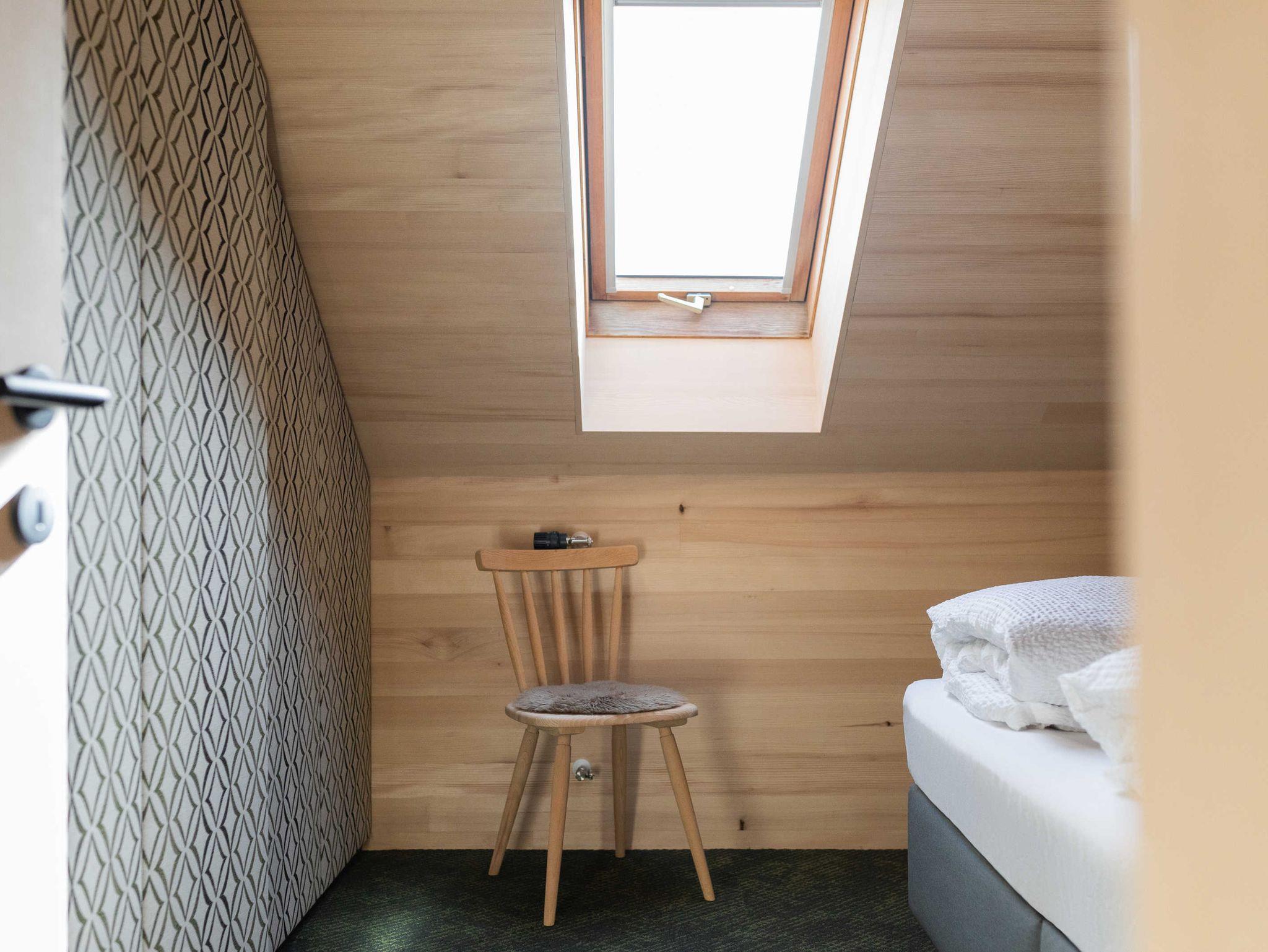 Die Ferienwohnung Ifen wurde 2021 vollständig renoviert und umgestaltet. Es steht nun ostseitig ein großzügiger Wohn-, Ess- und Schlafraum mit integrierter Küche und Balkon und ein Schlafzimmer zur Verfügung. Die Räume sind hochwertig mit heimischem Holz aus Weißtanne getäfert. Die Möbel und die Küche stammen vom Bregenzerwälder Tischlermeister. Die Planung und die Beleuchtung stammt von Georg Bechter Licht und Architektur aus Hittisau.