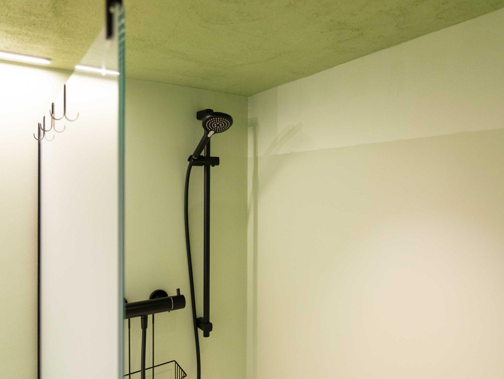 Die Küche ist mit Geschirrspüler, Herd, Backofen, Geschirr, Geschirrtüchern und mit einer Kaffeemaschine (Filtermaschine und Senseo-Pad) ausgestattet. Im Wohnraum steht ein Qualitätsschlafsofa für ein bis zwei Erwachsene zur Verfügung. Zur Ausstattung des Wohnraumes gehört ein Fernseher mit Smart-TV-Funktionen, sowie kostenfreies WLAN. Das separate südseitig ausgerichtete Schlafzimmer mit einem Doppelboxspringbett und das Badezimmer sind ebenfalls von qualitativer Bregenzerwälder Handarbeit gekennzeichnet. Handtücher und Bettwäsche sind ausreichend und zum Wechseln vorhanden. Der Zugang und der Vorraum sind großzügig gestaltet.