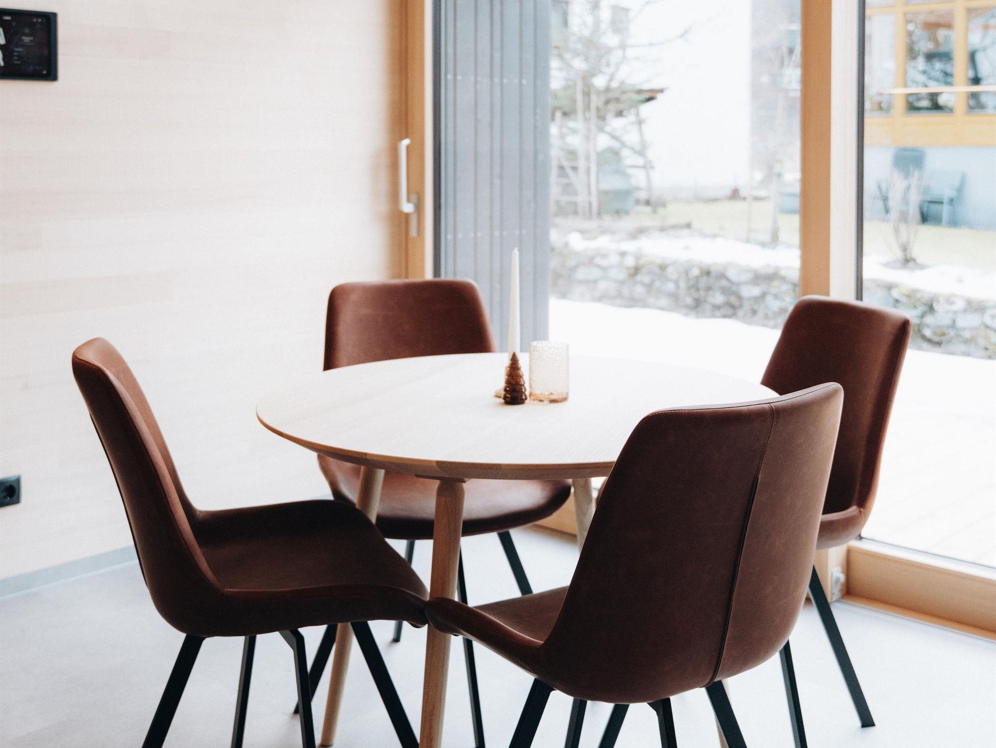 Eine Wohnküche mit Ceranfeld, Kühlschrank, Kaffeemaschine, Wasserkocher, Toaster und Geschirrtüchern. Schlafen mit Verdunklung, Aufwachen mit Aussicht. Bio-Bettwäsche und Handtücher inklusive. Kleines Bad, ein Kamin mit Feuerholz, eine Galerie zum Lesen oder Nichtstun. Garten, Carport, Skidepot mit Schuhtrockner, Platz fürs Rad. Smart Home für Licht, Musik und Fenster. Brettspiele und Bücher.