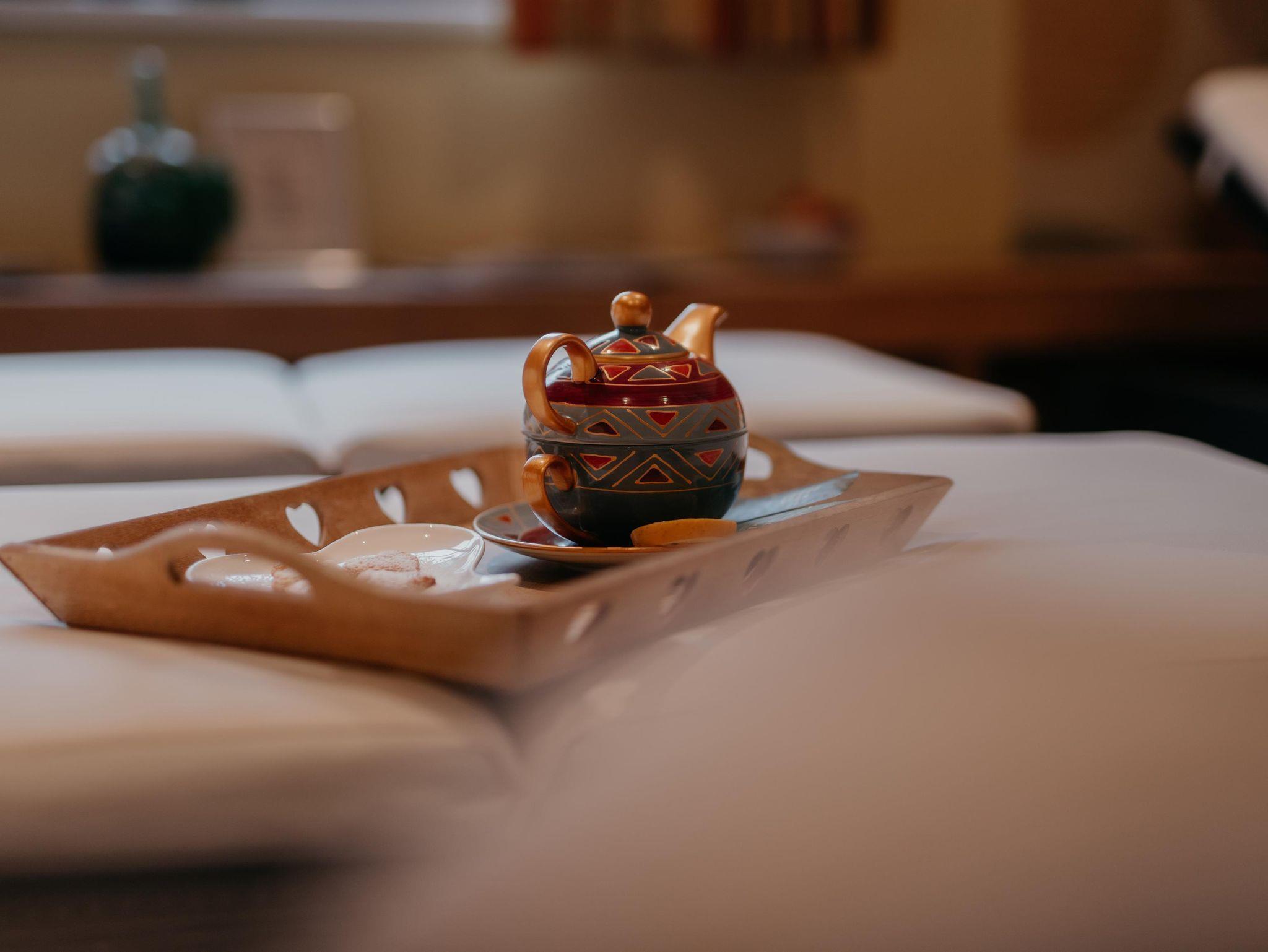 Sauna oder Kräuterdampfbad, Ruheraum.