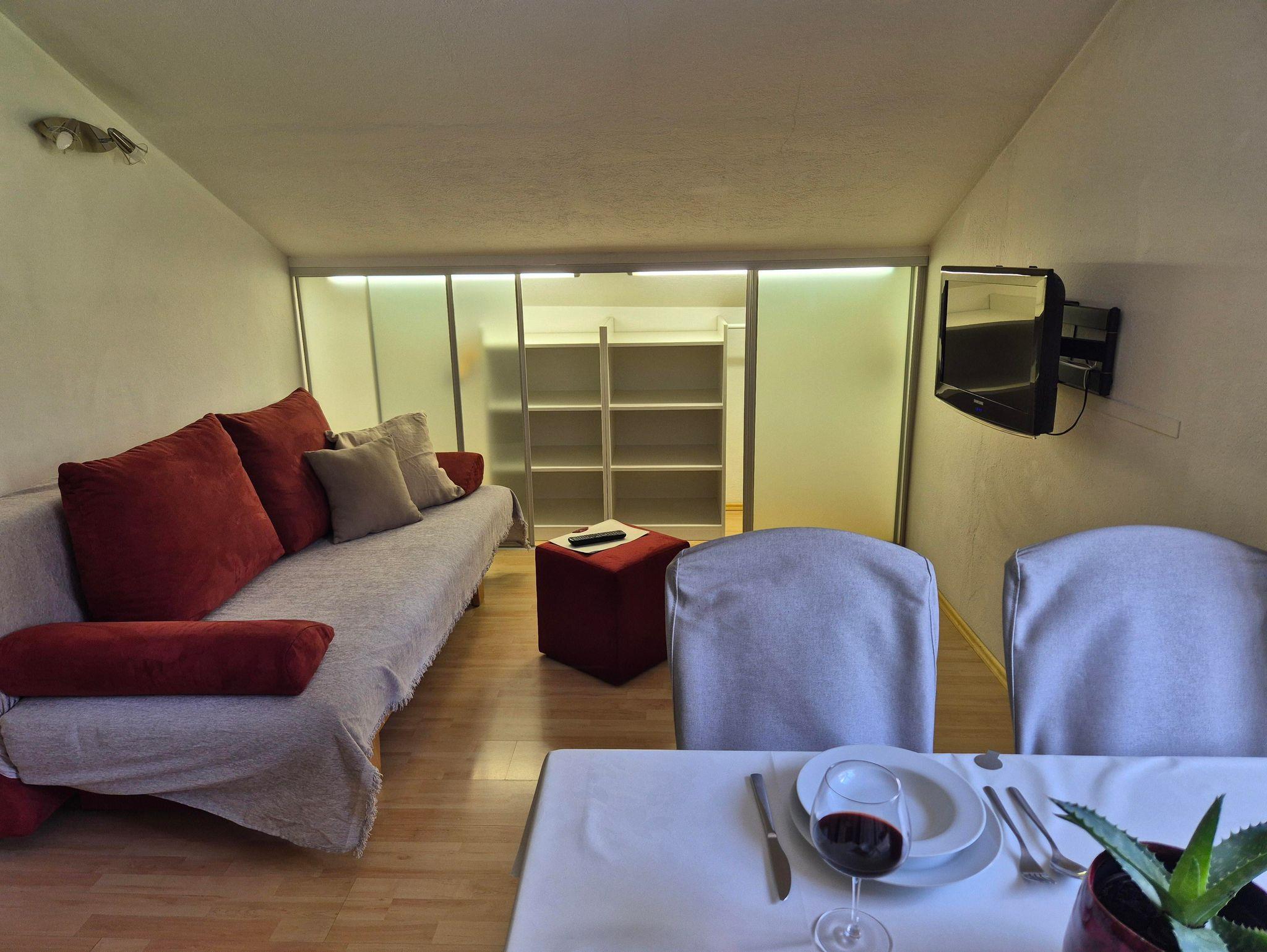 Bestehend aus Wohnküche mit Flachbild- SAT-TV, kostenfreies W-Lan, ausziehbarer Doppelbettcouch, Doppelzimmer, Vorraum, Dusche/WC, Abstellraum.