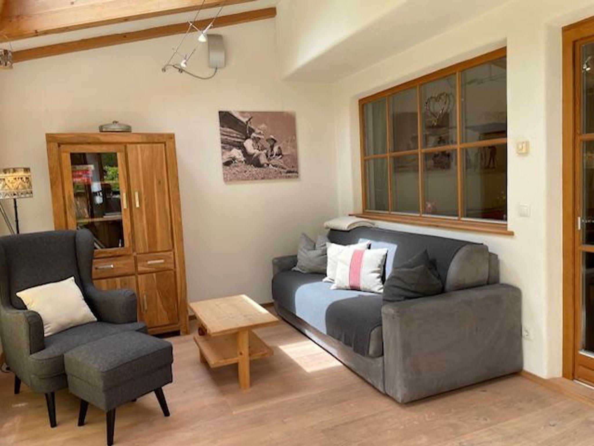 Im Erdgeschoss gelegene Wohnung mit Wohnküche inklusive Wintergarten mit Schlafsofa, Schlafzimmer mit Doppelbett, Tages-WC und Badezimmer mit Dusche. Im Keller befindet sich zudem eine kleine Waschküche.