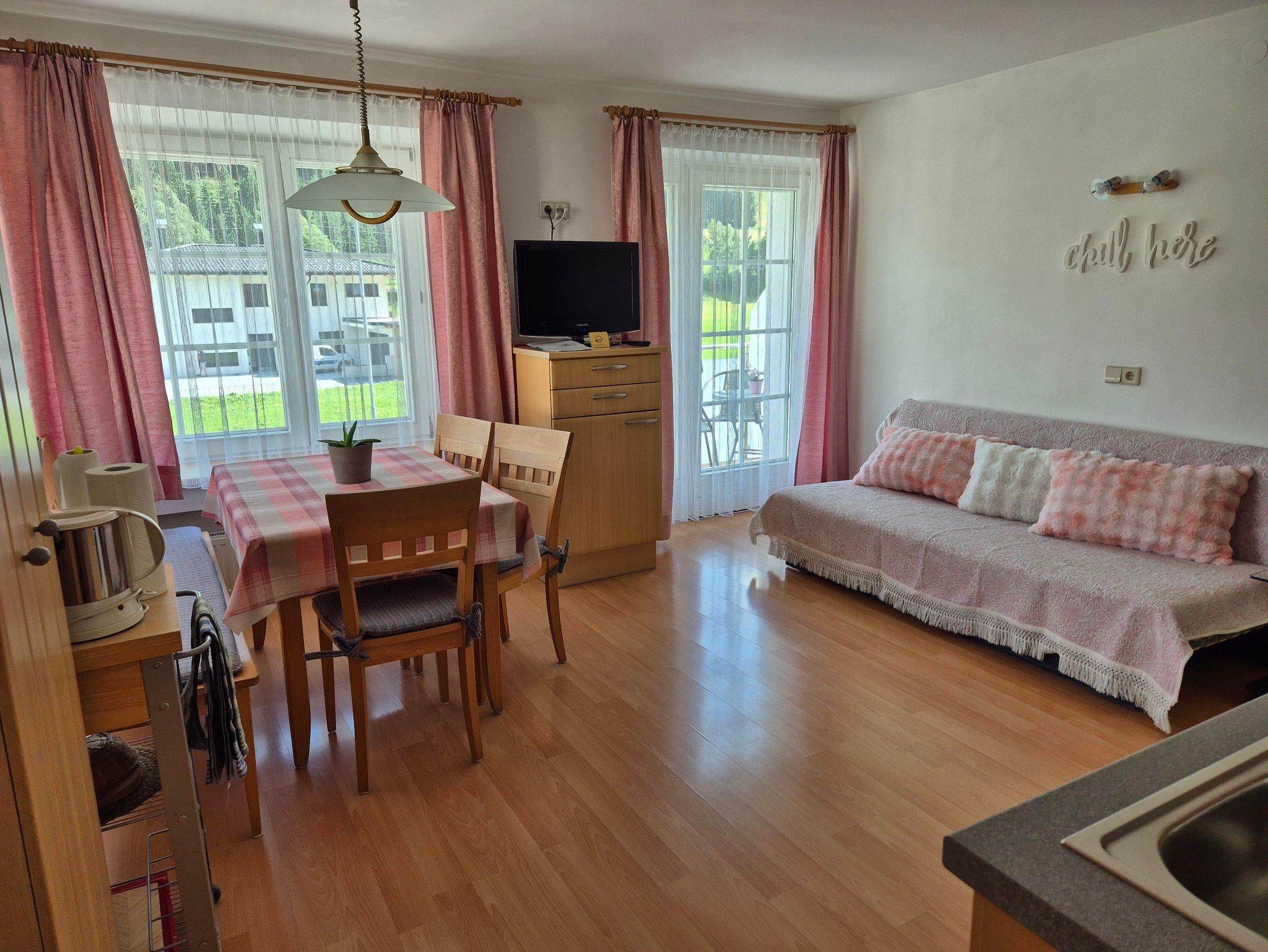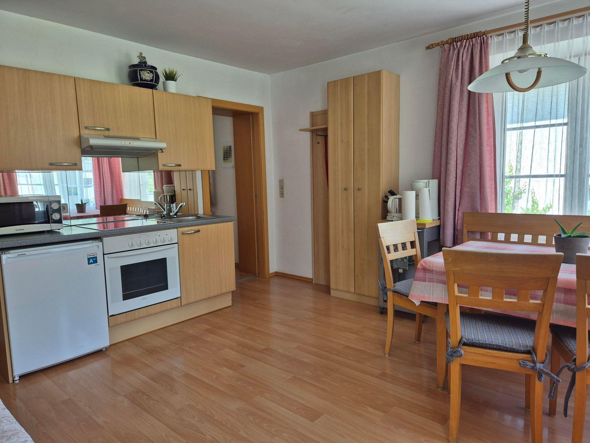 Das Appartement besteht aus Wohnküche mit Flachbild-Sat-TV, kostenfreies W-Lan, Couch, kleiner Balkon, Doppelzimmer mit Dusche/WC.