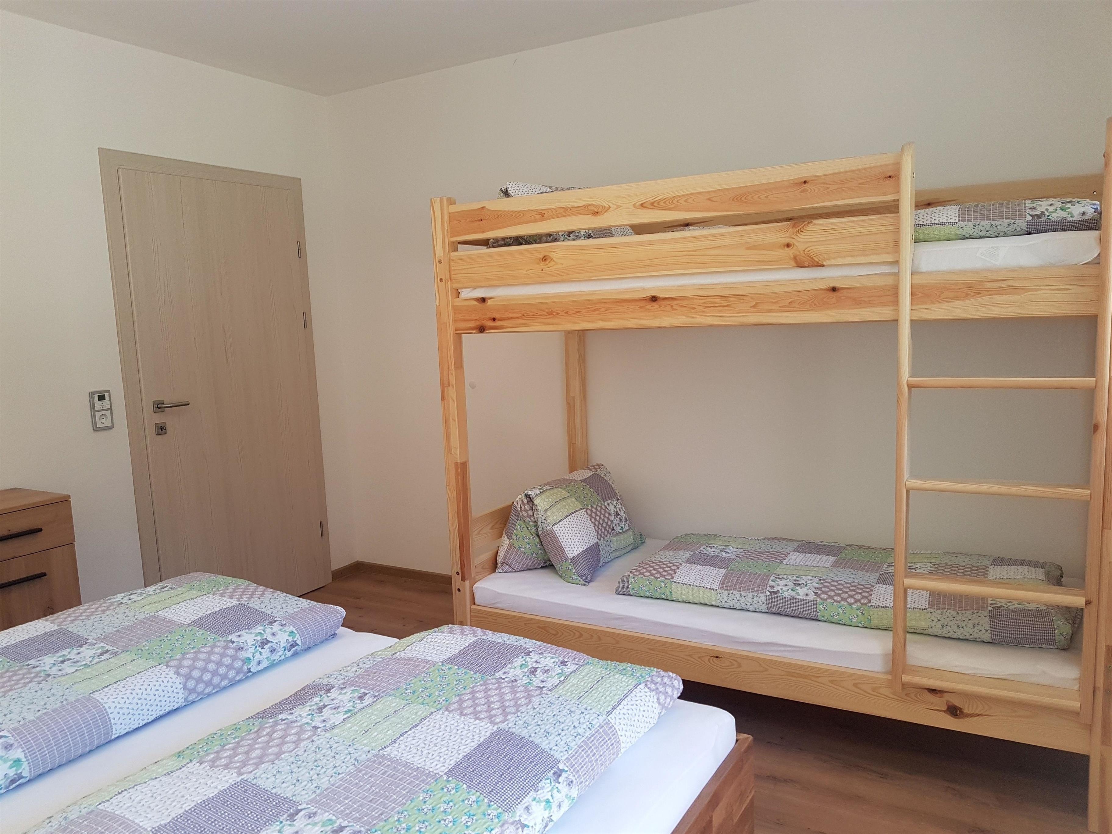 Das Apartment bietet Ihnen eine große und mit allen Komfort ausgestattete Wohnküche, 1 Schlafzimmer mit einem Doppelbett und Etagenbett, 1 Schlafzimmer mit Etagenbett, 1 Bad mit Dusche, WC und Waschbecken.