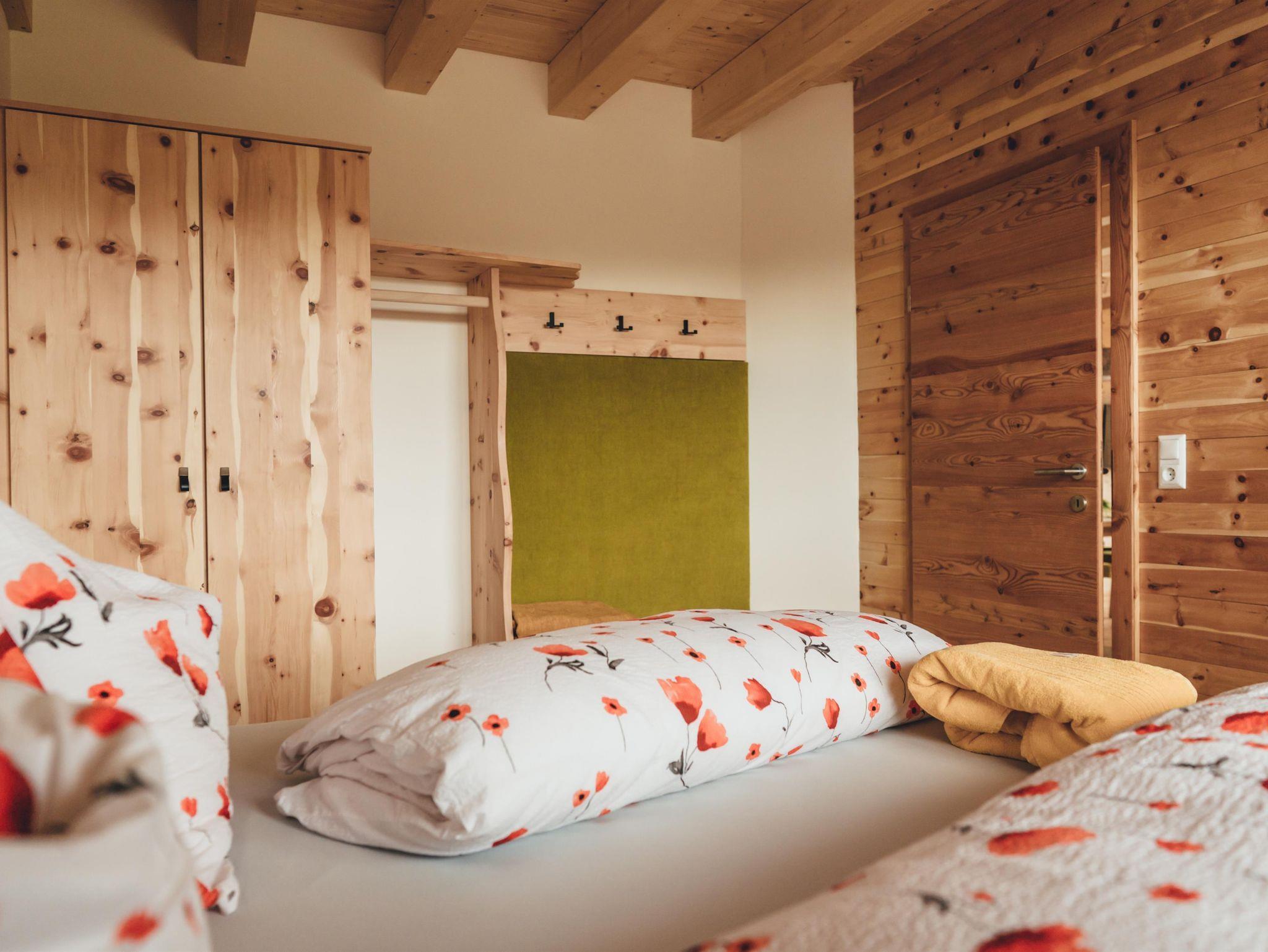 Zirben – Schlafzimmer Nr. 1 mit Doppelbett, Kinderbett;