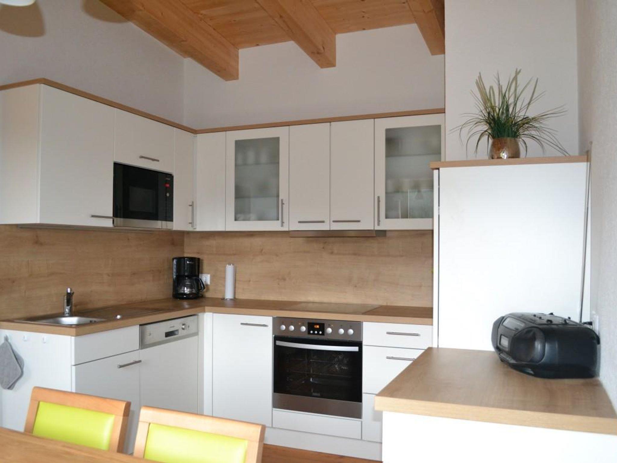 Die Ferienwohnung Fernblick befindet sich im Nebengebäude im 2. Stock. Die Wohnung besteht aus 2 Schlafzimmern mit 1 Doppelbett und 1 Stockbett. Das Bad ist mit offener Dusche, komfortablem Waschplatz und WC ausgestattet. Die Wohnküche hat eine großzügige Essecke. Der Wohnraum lädt mit der gemütlichen Eckcouch zum relaxen ein. Durch eine Schiebetüre gelangt man auf den Balkon mit einzigartigem Panoramablick.