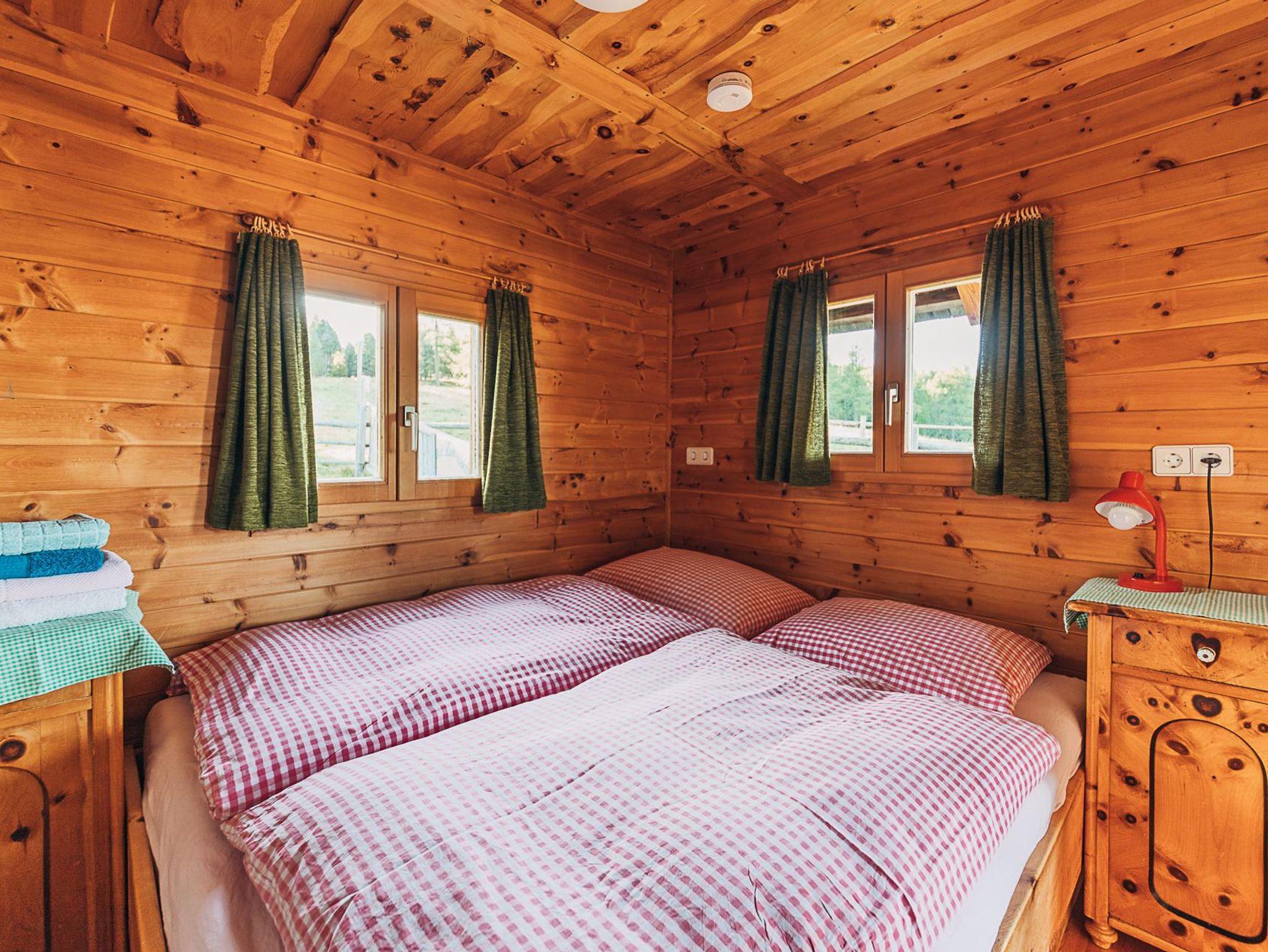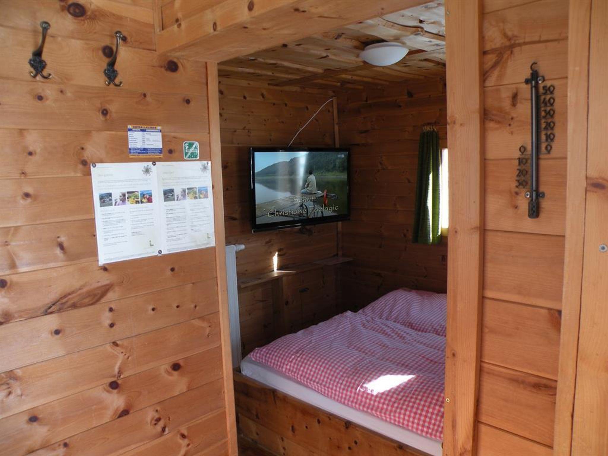 In der Sennerhütte gibt es ein Doppelzimmer mit SAT-LED-TV und die Dusche/WC. Ein eigener kleiner Gartenbereich mit Liegen lädt zum Verweilen ein.