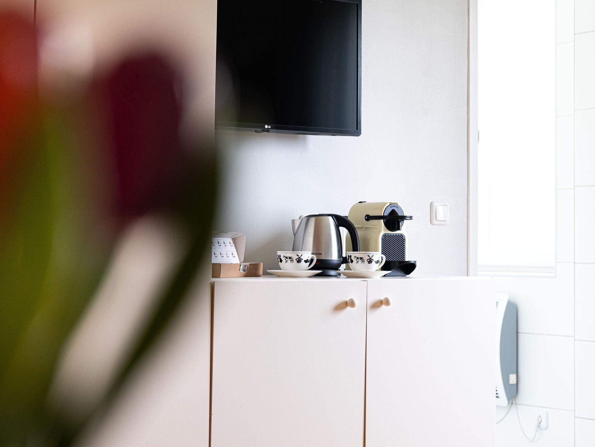 • Kaffeemaschine, Wasserkocher, Minikühlschrank