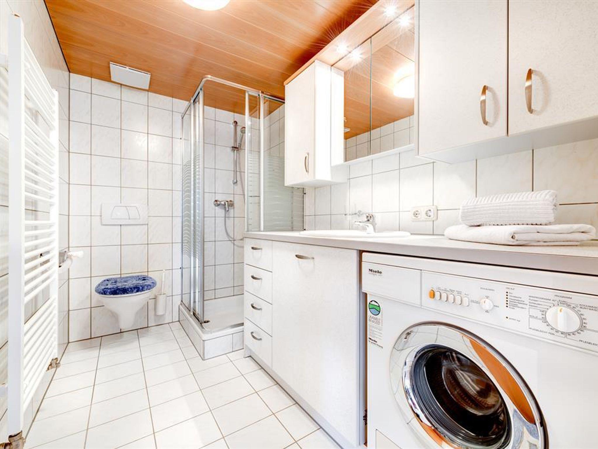 Die Ferienwohnung für 2-4 Personen verfügt über eine größere Wohnküche mit Essbereich, Liegecouch mit Fernseher, einem separaten Schlafzimmer für 2 Personen (1 Reisebett wenn gewünscht) und Badezimmer. Für längere Aufenthalte steht Ihnen eine Waschmaschine zur Verfügung. Die Küche ist mit Kühlschrank, Backofen, Mixer, Wasserkocher, Kaffeemaschine und Toaster sowie mit Inventar ausgestattet. Die ausziehbare Liegecouch in der Wohnküche bietet für 2 Personen eine Schlafgelegenheit. Bettwäsche, Tischwäsche und Handtücher werden ebenfalls bereitgestellt. Auch das W-lan steht Ihnen gratis zur Verfügung. Auf der Terrasse können Sie sich von der Abendsonne verwöhnen lassen. Es besteht die Möglichkeit, diese Wohnung gemeinsam mit der kleinen Ferienwohnung zu buchen.