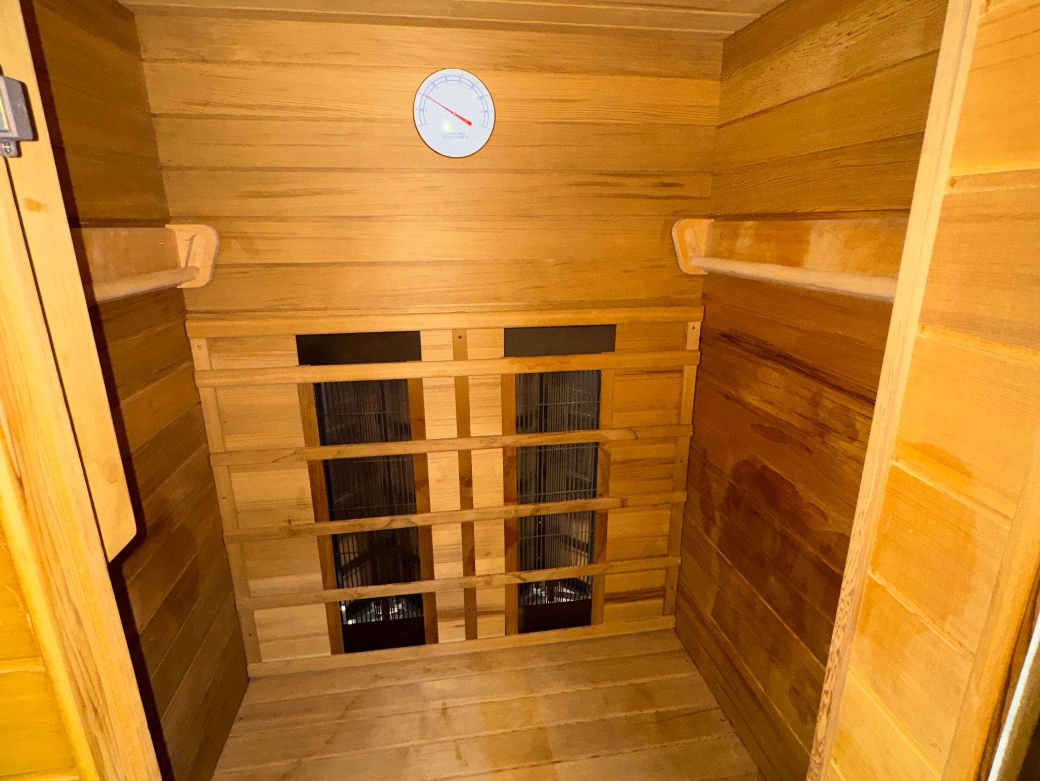 • Eine Infrarotkabine für zwei Personen, die gegen Gebühr genutzt werden kann. Bei Buchung zusammen mit dem Whirlpool erhalten Sie einen Rabatt.