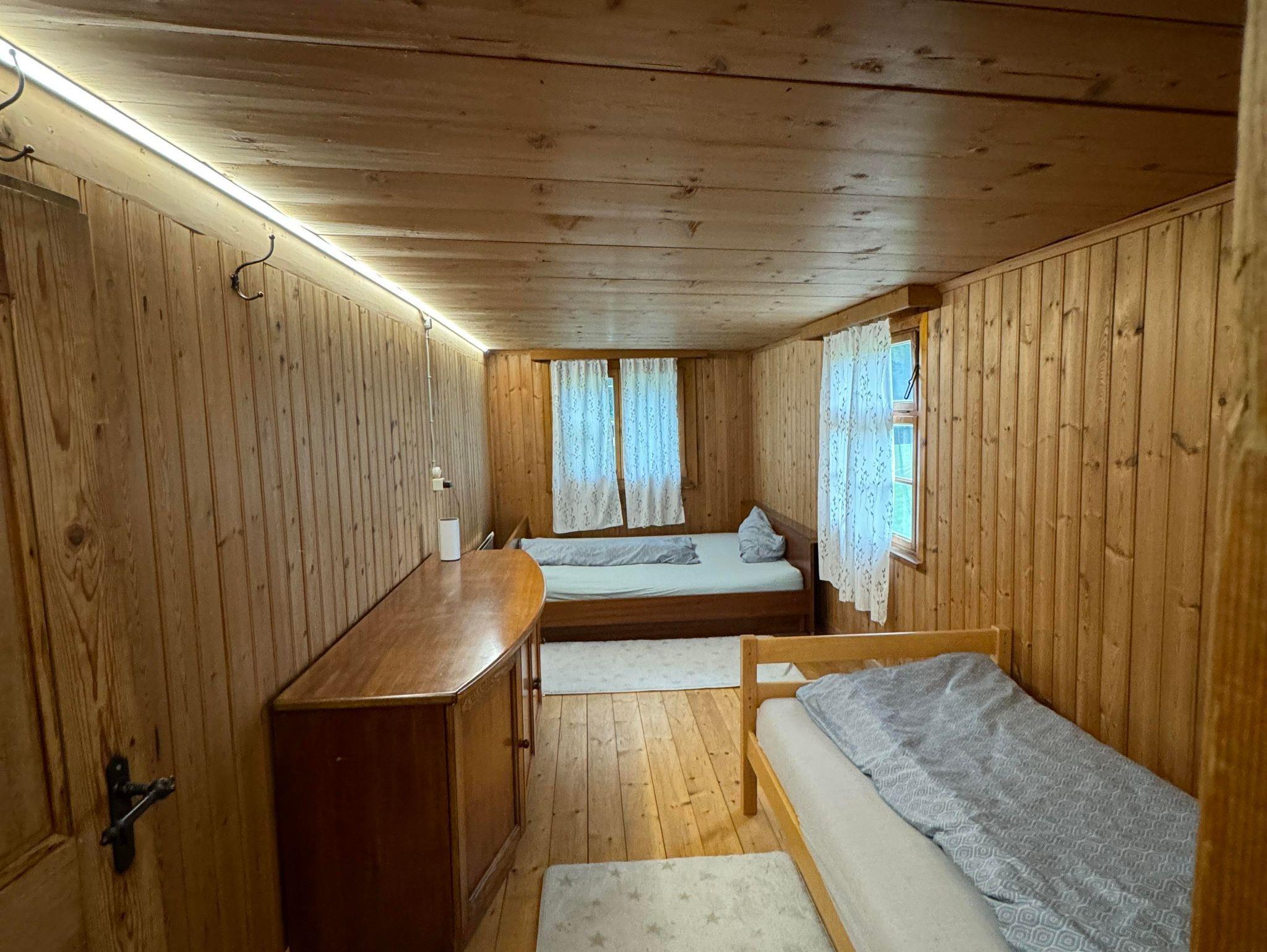 • Ein Schlafzimmer mit Doppelbett und Einzelbett für entspannte Nächte.