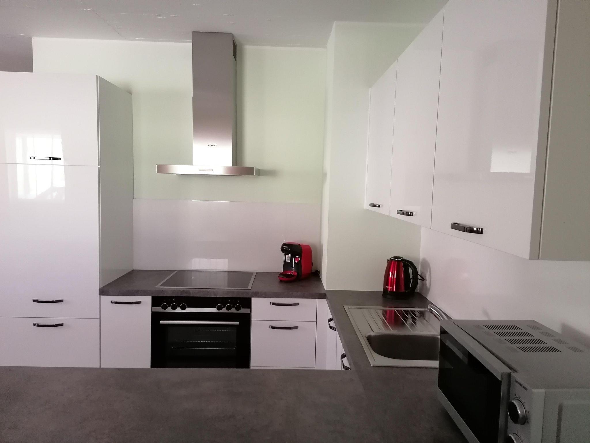 Die vollmöbelierte Ferienwohnung im Haus ist ebenerdig. Im offenen Wohn/Essbereich befindet sich eine komplett ausgestattete Küche (Herd, Backrohr, Geschirrspüler, Mikrowelle, Kaffeemaschine, Wasserkocher usw.). Im Wohnbereich befindet sich ein TV, Radio und eine gemütliche Schlafchouch. Das Schlafzimmer ist mit einem Boxspringbett und einem Kleiderkasten möbeliert.