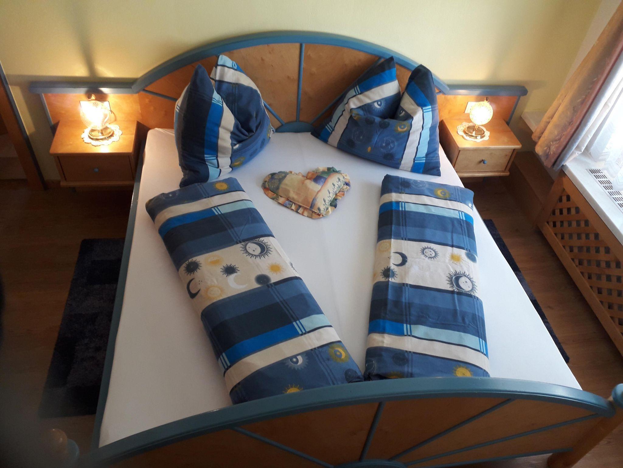Ein Doppelbett- Schlafzimmer mit Gesundheitsbetten und Sat/TV, Föhn, Safe, DU/WC, Vollholzmöbel.