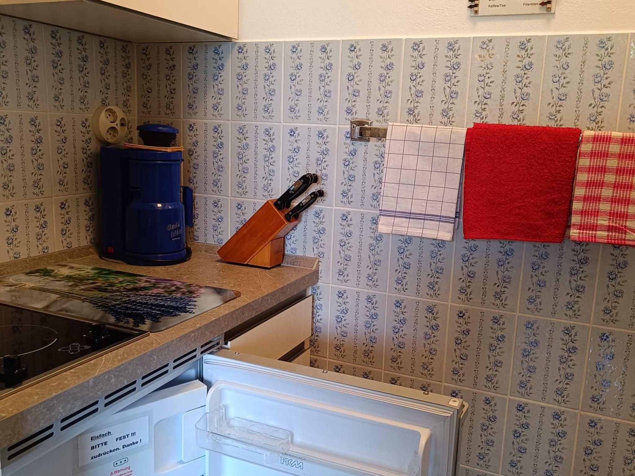 ?Kochnische mit Kühlschrank, Ceranfeldern, Wasserkocher, Kaffeemaschine, Pizzaofen, Toaster, überkomplett ausgestattet mit Geschirr und Gläsern, ... inkl. Koch-Wäsche!